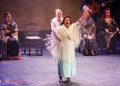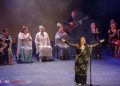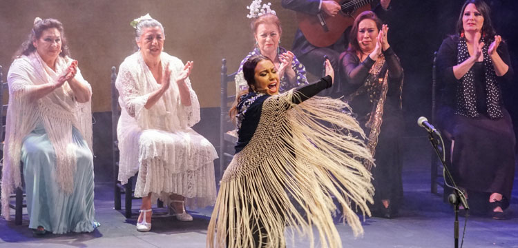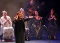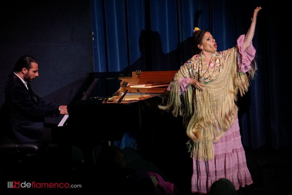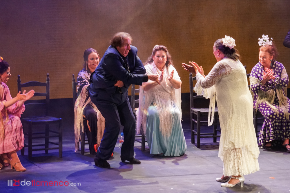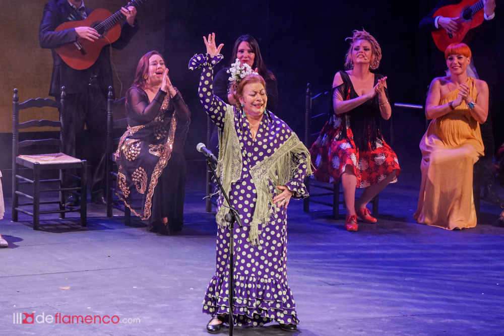 La cosa había empezado por la violetera, símbolo de Madrid y de la mujer. Hablo el director Rojas y dijo que se cumplían 23 años de la muerte de Lola Flores y uno recuerda que estuve en aquel velatorio, mismo lugar, rindiendo memoria a una mujer que fue libre y faro de la libertad y hasta el maestro de ceremonias Enrique Pantoja se puso serio y se santiguó frente a su retrato. Total que un pianista de la nueva generación Pablo Rubén Maldonado introdujo la primera escena con Enrique Pantoja en el papel de maestro de ceremonia. Tras la primera impresión entran por seguiriyas María Vargas y María Mezcle embarazadísima, luego Montse Cortés y Aurora cantaron una, o dos baladas, María La Coneja tocó las castañuelas y Blanca del Rey se hizo un monólogo sobre lo bueno del ir al teatro y marcarse unos pasos de baile con tacón de calle, algo que luego ocurrió en las bulerías en que la mayoría de las artistas estrenaron traje para la ocasión sin que tuvieran en cuenta la célebre patá y lo mejor fue ver a Maria La Coneja con zapato plano y un moño coronado de flores del campo dando una lección legítima de sabor y seguridad al pisar con garbo, completaron Encarna Anillo y Rocio Bazán y el telón se cerró sobre la última patada de Enrique Pantoja y y Tia Juana.
