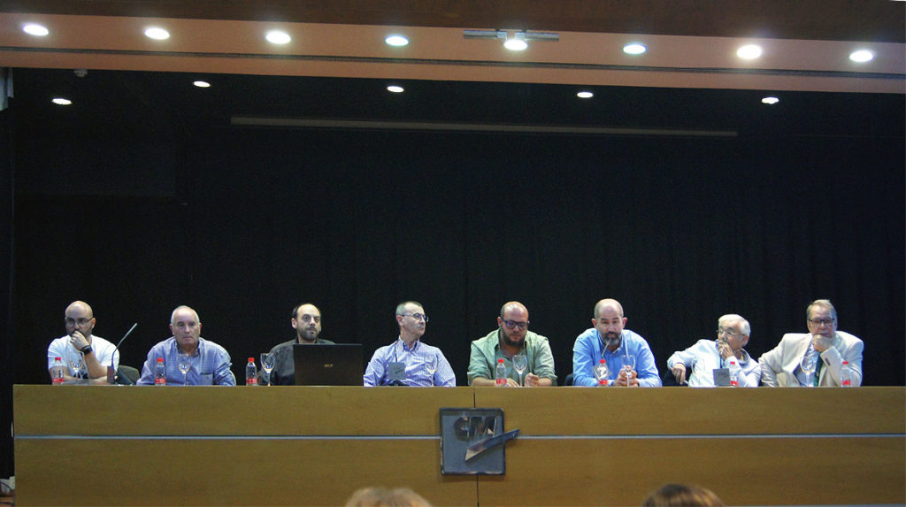 Momento de interés fue la reunión de los directivos de las peñas flamencas de la región. En la mesa se sentaron, de izda. a dcha., Ángel Ronda, de la peña Antonio Piñana de Cartagena; Diego Torres, de la Asociación Flamenco y Copla El Arte de San Javier; Frank Béjar, de Murcia Flamenca, de Murcia; José Antonio Oliva, de la Cueva Flamenca de Lorquí; Onésimo Hernández, de El Malakate Flamenco de La Unión; Mariano Escudero, de la peña Melón de Oro de Lo Ferro (Torre Pacheco); y Cayetano Padilla y Luis Terry (presentador de las galas del Festival Internacional de Cante de Lo Ferro), de la peña Ciudad del Sol de Lorca, un debate entre los componentes de la mesa a la hora de evaluar el estado del flamenco en las ciudades murcianas; la peña como refugio natural de socios y aficionados, sus programaciones y actividades en el desarrollo del conocimiento popular flamenco.