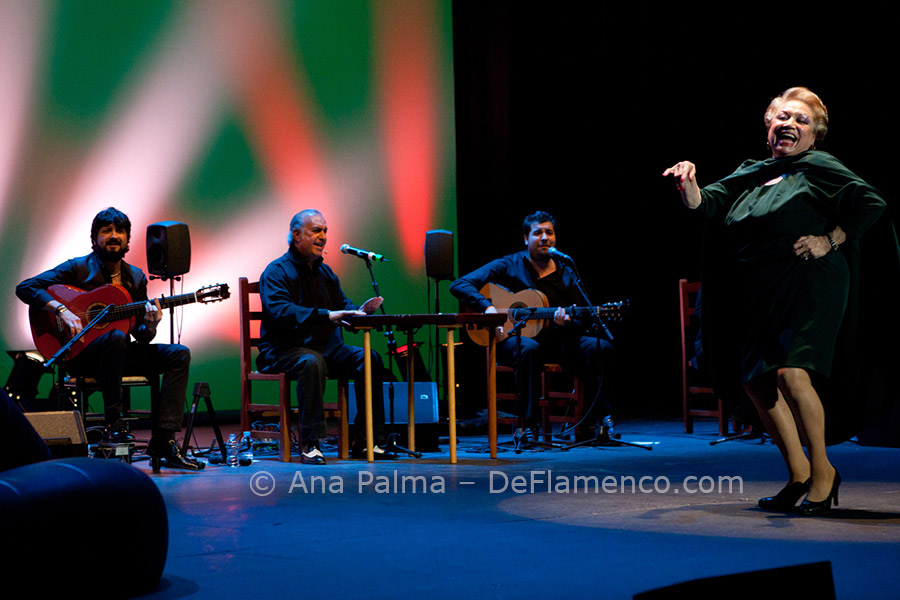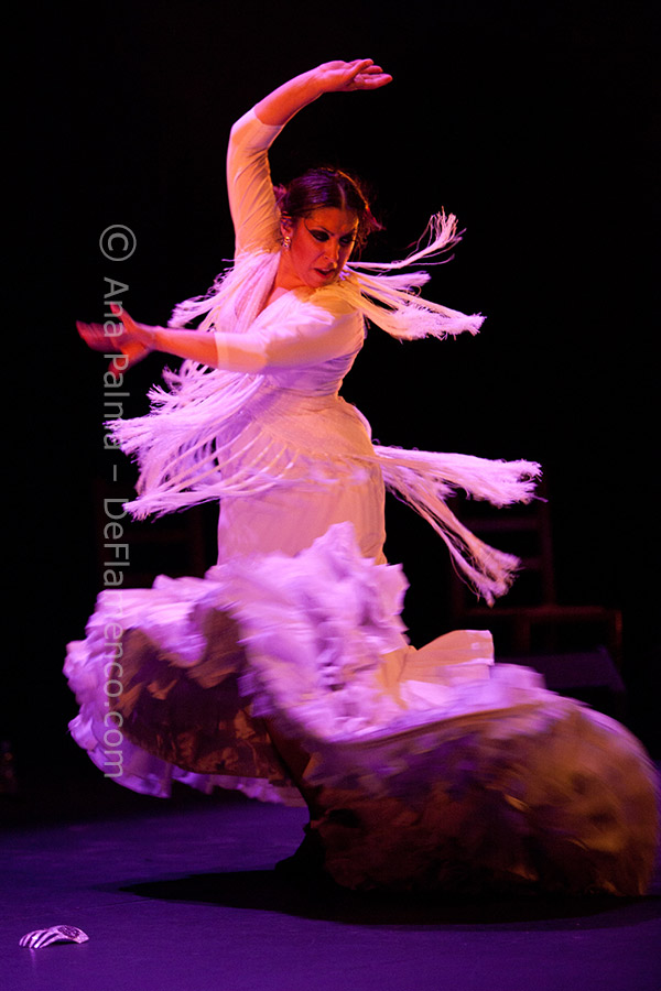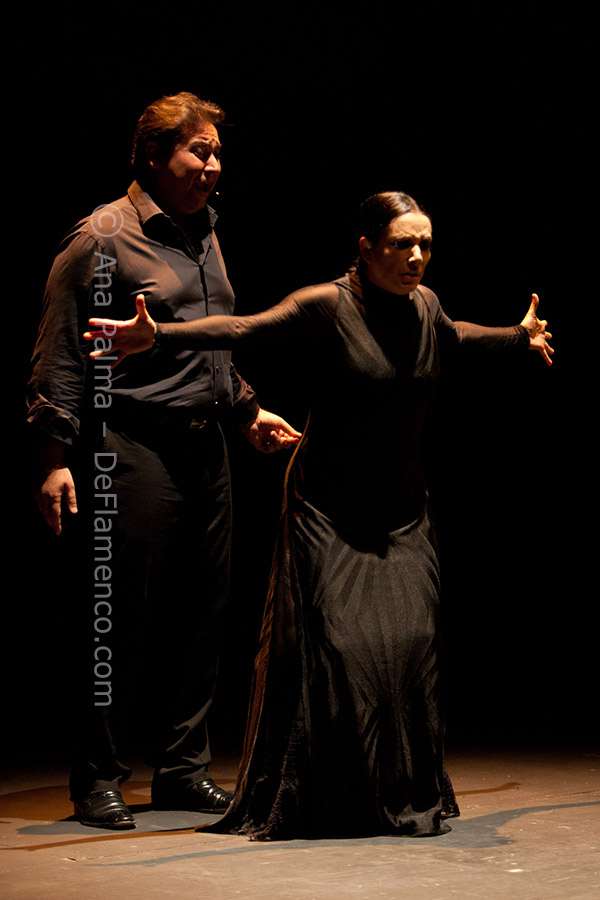 The second case came in “Mi Voz en tu Palabra”, the show that Esperanza Fernández devoted to the poetry of José Saramago. The audience reaction was cooler than for Yerbabuena, and they were unmoved by Esperanza who sang well, but brought a show that was lacking in flamenco spice, rage, fire. For that, we had Pastora Galván, who participated with two dances, and thanks to her exquisite “working class” movements which have become her trademark, she got the audience eating out of the palm of her hand. Pastora stole the show from Esperanza, and shared it with Miguel Ángel Cortés, who at this stage no longer plays the guitar but rather possesses it. The solo piece he played while Esperanza changed costume, got the audience to their feet.