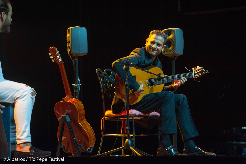 Abrió la noche la guitarra de Diego del Morao (con la percusión de Ané Carrasco y una segunda guitarra), que resulta siempre una garantía de diversión y exploración. A pocos días del aniversario de la muerte de su padre, el heredero al trono de la guitarra de Santiago volvió a tejer ese manto peculiar, tan suyo, de cuerdas de raíz y aire. Generar este espacio de lucimiento del instrumento ha resultado todo un acierto por parte de la organización, pues permite mostrar al concertista que habita en muchos guitarristas además del habitual acompañante, siempre al servicio del otro. Quizá, en otra edición, podamos disfrutar de alguna mujer guitarrista.