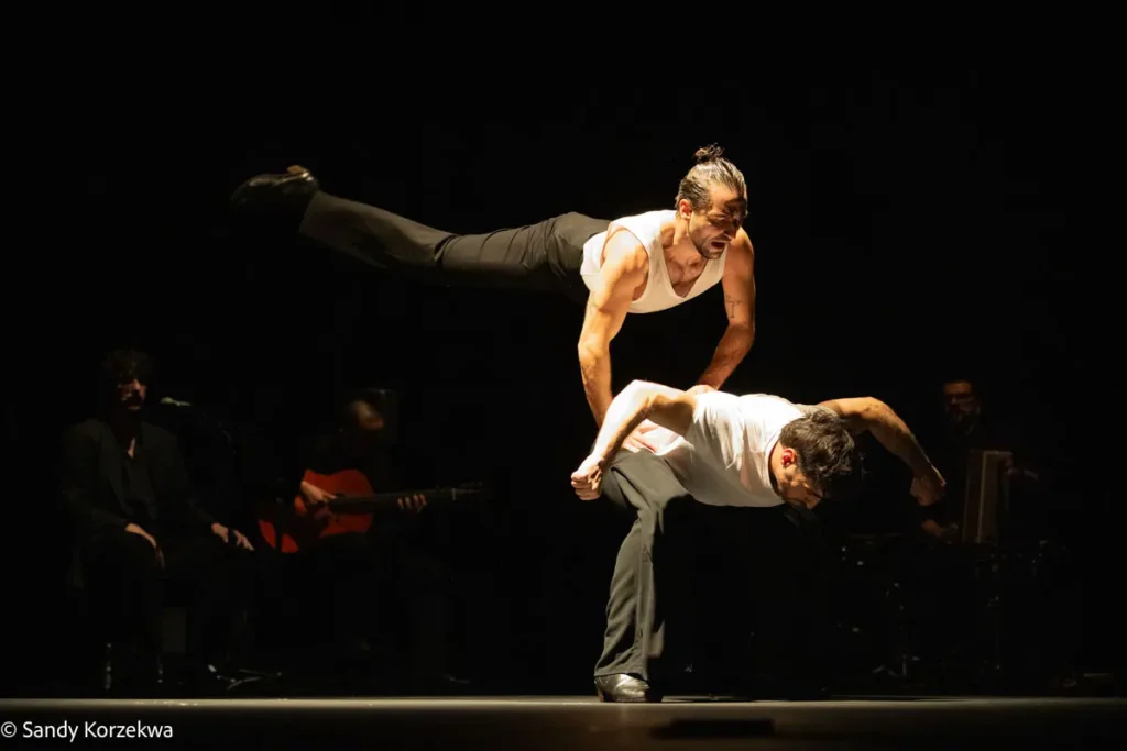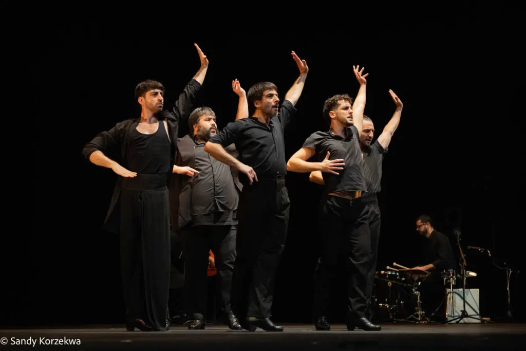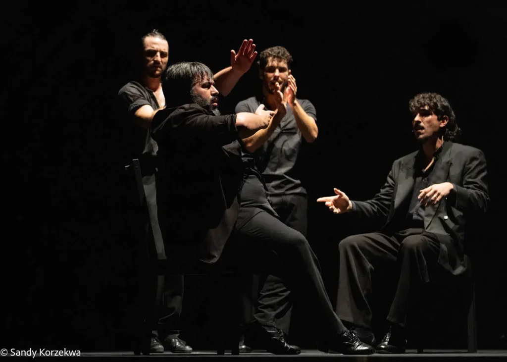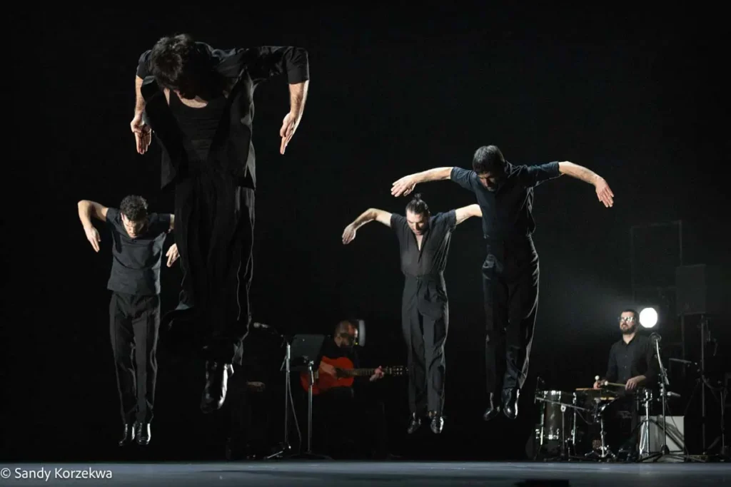 Bailaron Estévez, Valeriano Paños, Alberto Sellés, Jesús Perona y Jorge Morera mucho y bien: hay destreza técnica y plasticidad, ritmo y precisión y una gran intensidad emocional durante la hora y media de espectáculo. Los cuerpos están en el centro desde la picajosa y lasciva zarabanda hasta el Romance del conde de Osuna pasando por la gestualidad de Vicente Escudero y tantas otras referencias. Los cinco despliegan un muestrario versátil de esa amplia confluencia de culturas que, gracias a su encuentro y su diálogo, cristalizaron en ese arte que amamos que es puro justamente por no serlo y nacer de la amalgama más absoluta.