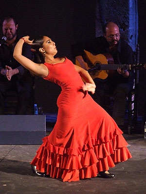 El Farru Nene de Santa Fe/Alba Heredia Orquesta Chekara/Ángeles Gabaldón Text and photos: Antonio Konde In times of recession as we are now going through, it’s not easy to program a series of flamenco shows that brings together top-flight flamenco stars. In Granada there is the aggravating factor that the city doesn’t have a major festival as have Seville, Madrid or Barcelona. The closest thing is the Muestra Andaluza de Flamenco programmed each year at the Corral del Carbón, the well-known venue in the city center which has particular charm for this type of activity. Flamenco fans can’t afford to pass up this program that goes on throughout the summer. A program made up of three weeks of singing, dancing and guitar-playing. One look at this year’s program shows the series has nothing to envy of other more prestigious festivals, despite the reduction of one week as a result of the economic situation. This twelfth edition got off to a fine start, with a local performer, a gypsy woman from the Albaicín who made good. Years ago she stopped being a young hopeful and ascended to the highest rung of the profession. It was an opening show full of surprises. We already know her faithful guitarists, Bola and Luís Mariano, Diego del Morao on occasion, but she wanted to surprise us with a top-notch Seville guitarist. None other than Rafael Riqueni was at her side to enhance a thoroughly enjoyable program. A friendly facing-off between voice and guitar, the yin and the yang of the best flamenco. Marina opened with siguiriyas, confident if a bit cold at the outset, but soon finding her way and letting the good cante flow. She chose a classic repertoire of verses and styles for alegrías, the perfect blend of poetry made music. She evoked Cádiz and Jerez in a very even-handed soleá before moving on to minera and taranta of la Gabriela. It was a fine moment when Riqueni executed a tango solo full of harmony and very creative in its composition. The complicity and mutual admiration between the two artists was on display throughout the entire performance. Granaína and media granaína, tangos of Granada and bulerías cuplé filled out the magical night which ended with an encore of fandangos del Albaicín as requested by the enthused audience.