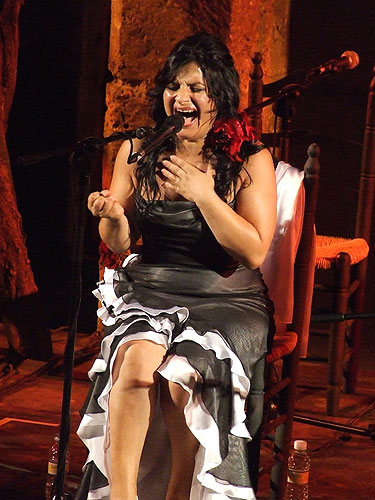 El mismo marco y veinticuatro horas más tarde acogió el cante de La Nitra y el toque de Paco Cortés. La Nitra se dio a conocer mundialmente por ser una de las voces que el Gran Paco de Lucía llevó en sus giras hace unos años. Poco queda de aquello. Un repertorio compacto, con cuatro cantes, muchas ganas de agradar, y poco resultado. La guitarra de Cortés fue quién se llevó las ovaciones pues a pesar de entregarse la cantaora en cada tercio, su voz estuvo rozada y posiblemente el estar semialejada de los escenarios no estuvo a la altura en los cantes de levante que realizó. Agradó por soleá, alegrías y bulerías que acabaron en fandango, pero faltó transmisión. Adela Campallo, bailaora sevillana, está en un buen momento. Nutrida de conocimientos, más serena, ha vuelto a sus orígenes. Alejada de vanguardismos, comenzó con baile personalizado y adaptado al cante de galeras del Lebrijano. Lejos estuvo el cante que no encontró su sitio a lo largo de la noche. Voces de Juan José Amador y Javier Rivera. Por alegrías se impuso el flamenco, y es que aunque parezca extraño, este escenario lo vuelve todo flamenco. Un cuadrado mágico custodiado por una fuente que lo convierte todo en flamenco. Apareció con fuerza y expresiva en demasía en sus pies. Cante de levante y fandango de Lucena en la voz de Amador para que la sevillana volviera a pasearse por seguiriyas. Y aquí apareció el duende en forma de baile. Enérgica de principio a fin. Para que más. De nuevo, Granada por un tubo. Única lámpara minera además de la de Manuel Ávila, Juan Pinilla presume de ser un cantaor atípico. Y para muestra un botón. Su repertorio nunca es el mismo, sus cantes tampoco. Sale de estereotipos cantaores, para adentrarse en cánones, a veces olvidados en el flamenco, pero que están ahí. Zambra romanceada en homenaje a Caracol y petenera haciendo honores a Pastora Pavón. Vidalita versión Morente y caña rematada por soleá. Cantiñas con letras de Machado y Alberti y final por fandangos de Macandé, Rebollo y El Gloria. La guitarra de Paco Cortés, como siempre magistral. Y más Granada. Que no se diga.