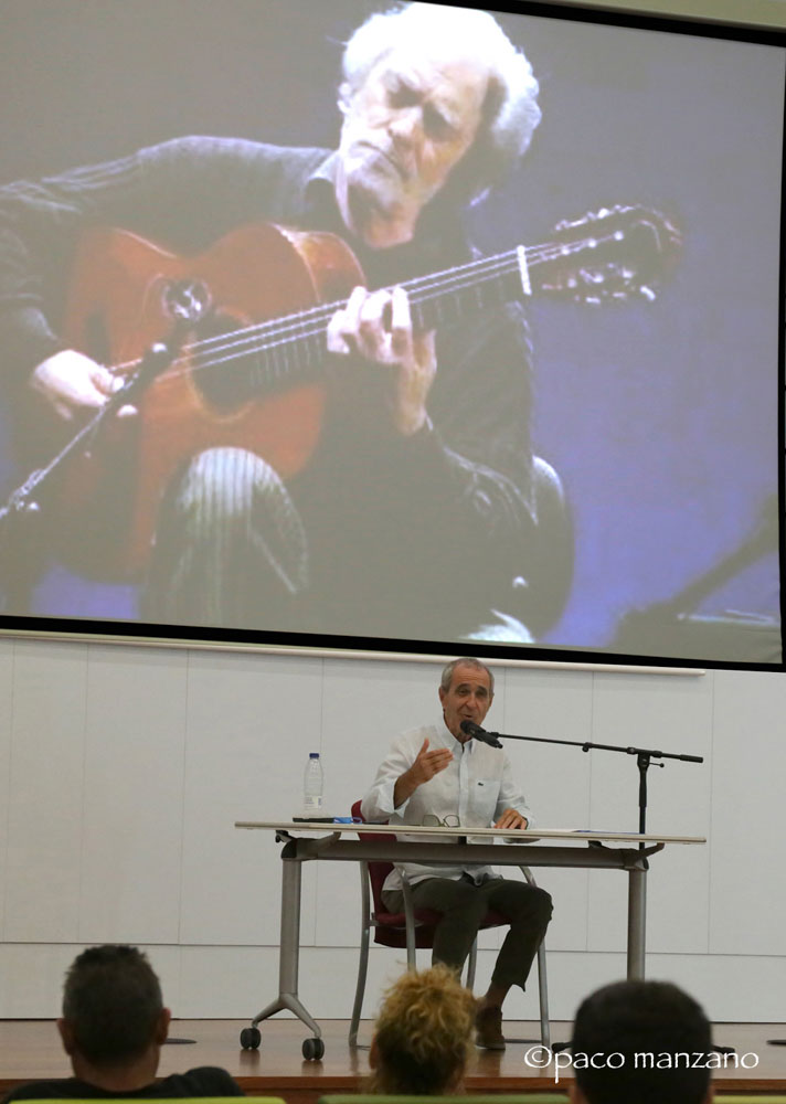 La tarde comenzó con la proyección de “pájaros de agua” un audiovisual dirigido por el fotógrafo Manuel Montaño sobre la figura y el pensamiento de Enrique Morente. Aquí tampoco somos neutrales al afirmar la trascendencia del cantaor que ha influido a varias generaciones con su maneras de ser y de cantar.