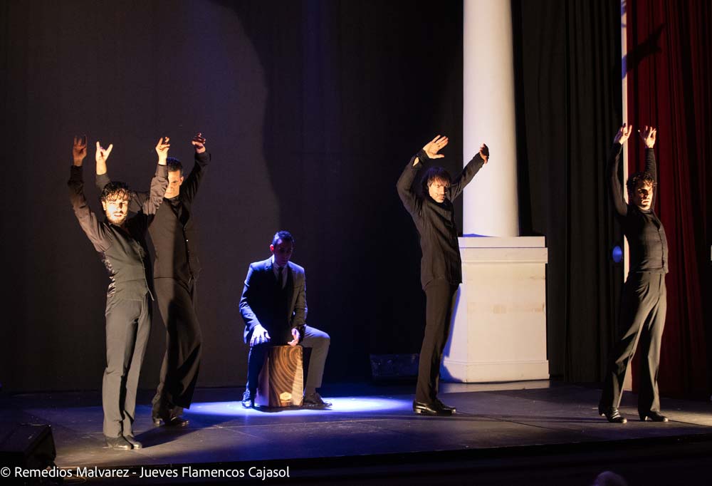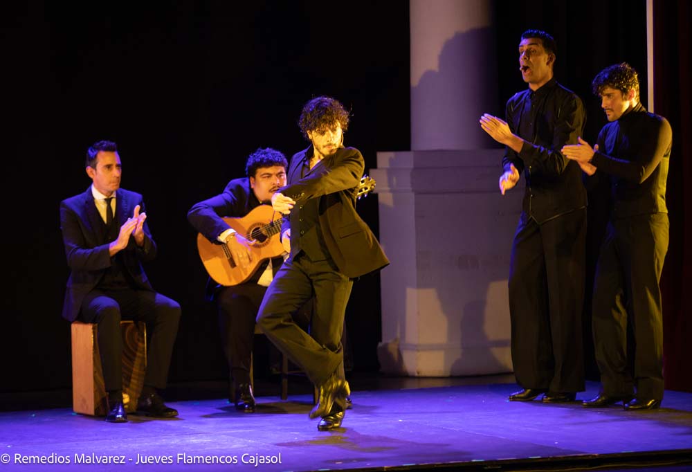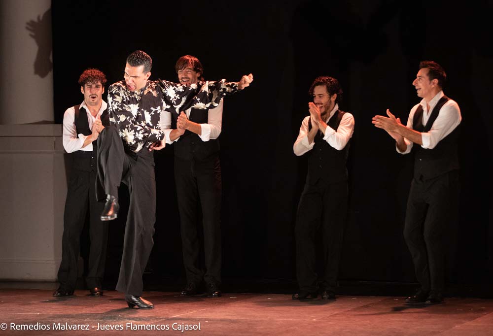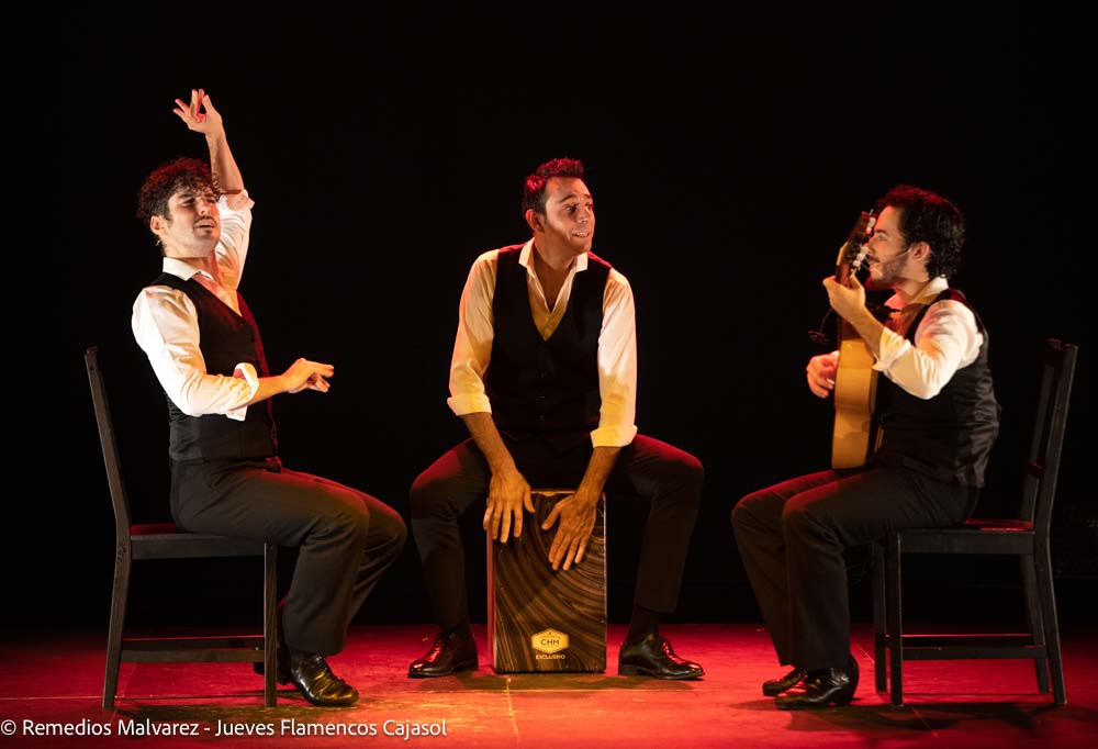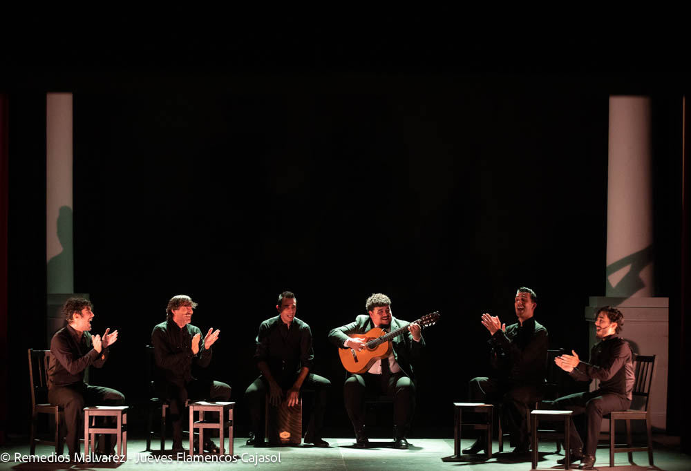 Espectáculo: Dando el cante. Baile y cante: Juan José Jaén ‘El Junco’, Miguel Ángel Heredia, Alberto Sellés y Juan Tomás de la Molía. Guitarra: Jesús Rodríguez. Percusión: Roberto Jaén. Lugar: Teatro Cajasol. Fecha: 23 de noviembre de 2023. Aforo: Completo.