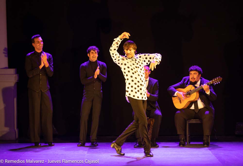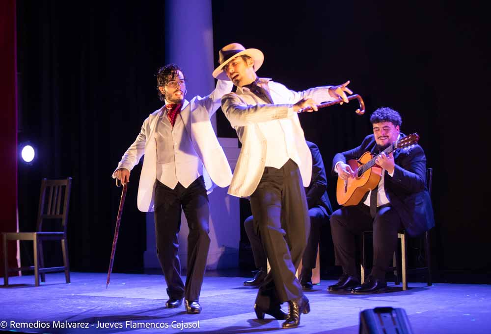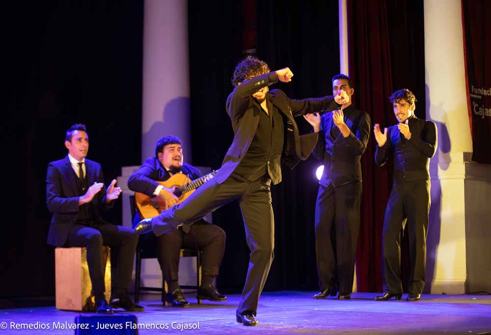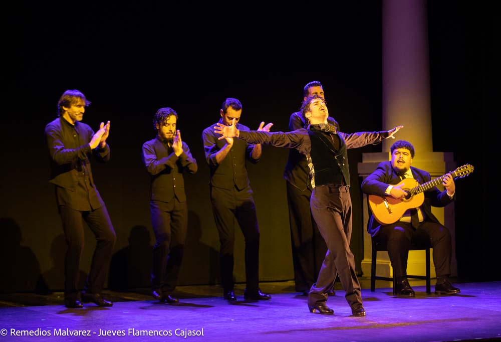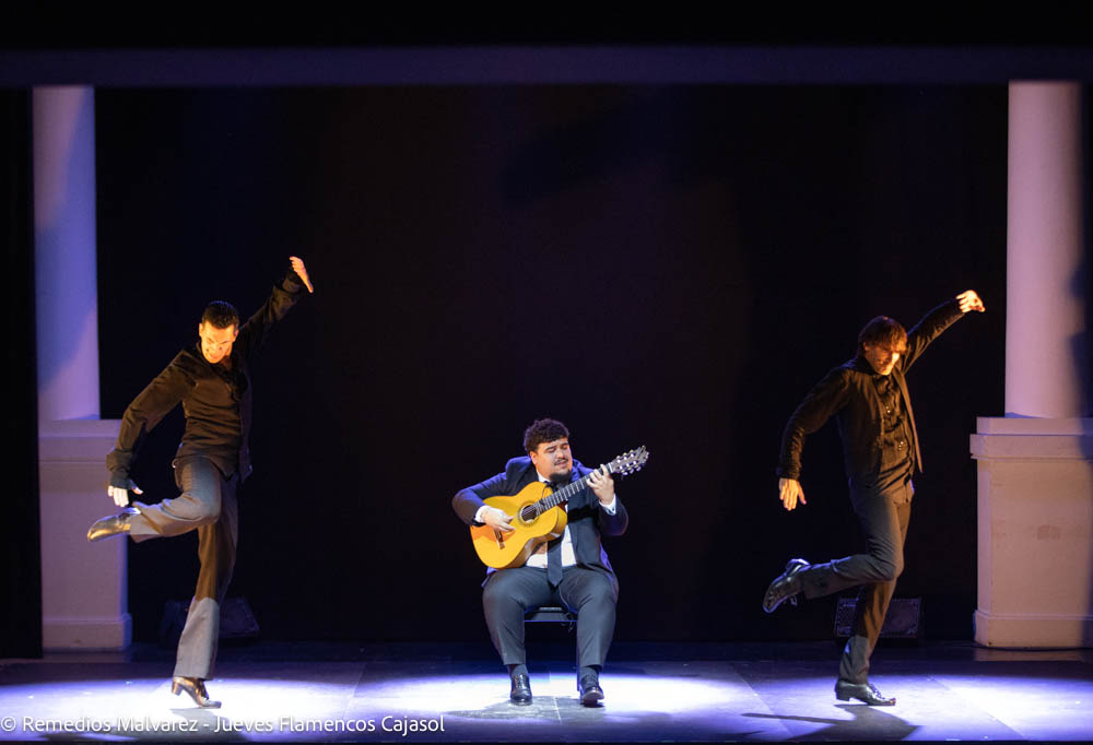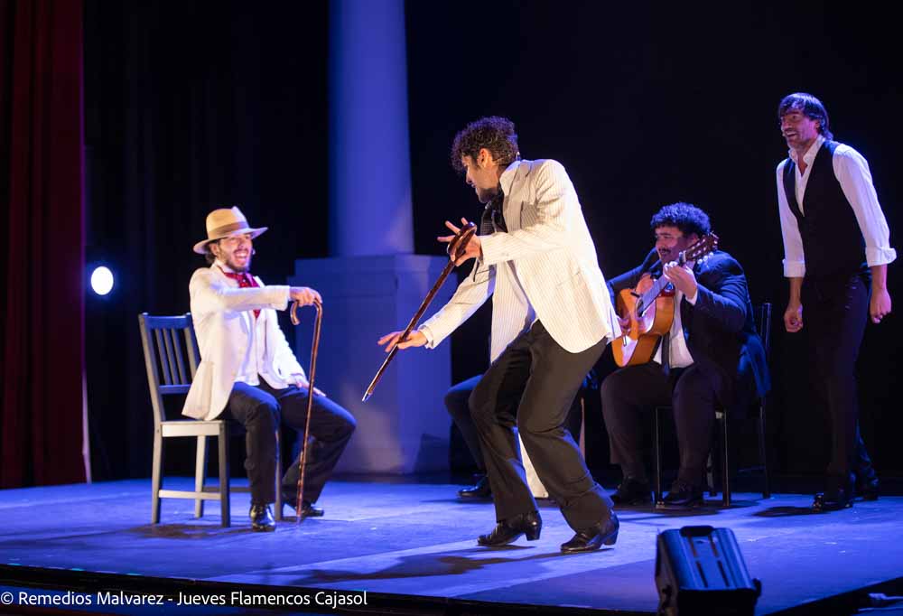 Espectáculo: Dando el cante. Baile y cante: Juan José Jaén ‘El Junco’, Miguel Ángel Heredia, Alberto Sellés y Juan Tomás de la Molía. Guitarra: Jesús Rodríguez. Percusión: Roberto Jaén. Lugar: Teatro Cajasol. Fecha: 23 de noviembre de 2023. Aforo: Completo.
