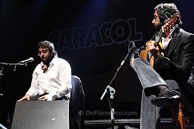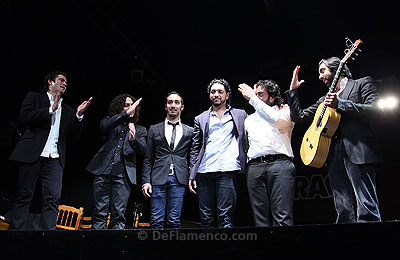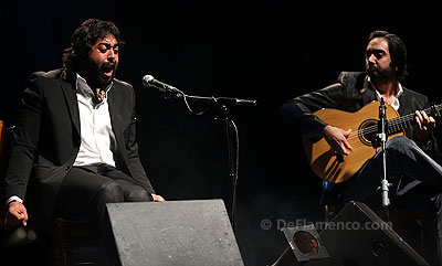 Text: Pablo San Nicasio Cante: David de Jacoba. Guitarra: Carlos de Jacoba. Guitarra y percusión: Lucky Losada. Palmas y baile: Isaac de los Reyes. Palmas: Luis y David Paniagua. Video fragment of performance 2 POWER WITH KNOWLEDGE He’s one of the best young hopefuls of gypsy singing. David de Jacoba set his mind to it and, getting past the great existential dilemma that runs through the minds of people starting out, he seems to have it all sorted out and claims he’s here to sing flamenco, the kind everyone can recognize. And he’s on the way, making his first recording, “Jacobeo”, (that thing about peace and a family line) and getting the jump on the competition. Among those in attendance at the “Caracol” (not the best place to debut a repertoire of orthodox cante), many familiar faces of Madrid flamenco could be seen, from writers and activists to the beautiful, the very beautiful and even some sports figures. Everyone seeking to be with the gypsy singer of the moment. A young man from Motril, province of Granada, who tours with Paco de Lucía and has what it takes to live comfortably off his singing. Incredible vocal quality that surges forth at the same time it’s controlled. Like the ad says, power with restraint and knowledge, in other words, qualities that make David de Jacoba more than just a flash in the pan. He has the capacity, the love for flamenco, he’s a sweetheart of a person, endorsed by important people and, though still young, has interesting experiences under his belt and has heard and lived with flamencos who know what’s what, you can be sure of that. He said it just a few days ago, and last night he made good on his words. David began and ended without musical accompaniment, with a fabulous sound that needed no guitar and was self-sufficient without being flashy. He showed his good sense of compás in varied forms, tangos, alegrías and bulerías. But where he really rose to the occasion was in the one on one with a surprisingly luminous aesthetic, with dance included. In soleá, also in taranta, reminiscent of Camarón, and especially in the siguiriya.- The year 2011 quickly drawing to a close, has been the year for siguiriyas in Madrid. What great singing! Let’s hope it’s not just because of the economic problems. It’s a flamenco form on the rise, and David de Jacoba is one of its best interpreters, which is good news. From beginning to end, and with the superb guitar of his brother, paying tribute via music to Paco de Lucía, David was truly great, and gave everything he had. A singer with a dark thick sound, David Maldonado Santiago isn’t looking to take the money and run, he’s humble and listens to classic cante, remembering those interpreters as well as current ones. This is a path that will serve him well when push comes to shove and he makes a break for the professional upper echelons of his generation. |