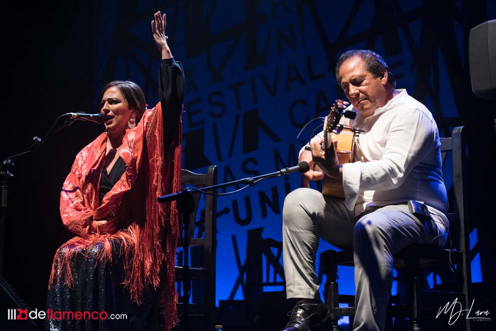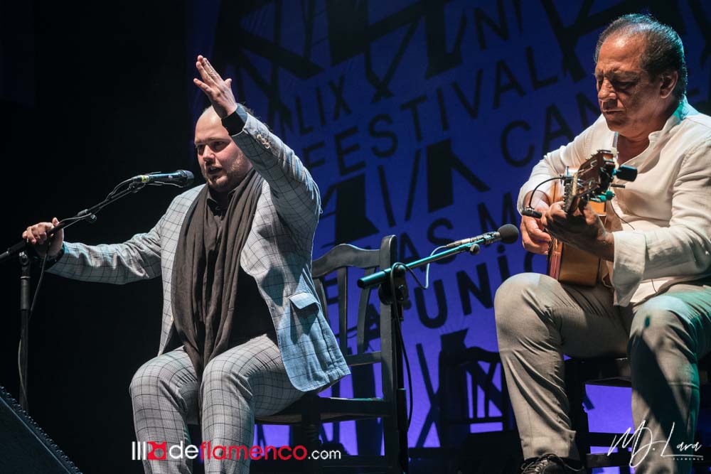 El primero que subió a las tablas fue Francisco Escudero Márquez «el Perrete”. A su vera, el guitarrista oficial del Festival Rosendo Fernández. Comenzó por Mineras, desplegando una vez más ese chorro de voz con cadencia y respiración, ligando tercios en ese tono meloso que nos recuerda esa otra manera de entonar, más de brillo y matices en el manejo de los tonos complejos del cante minero. La Malagueña la bordó; la Taranta, de rechupete; los Fandangos Abandoleaos suenan a gloria en el eco del recuerdo a Pérez de Guzmán. Bellísimos. Termina su actuación con Levantica, y de nuevo la cadencia de su melisma marcando diferencias. Los aplausos, vítores y olés retumban en el Antiguo Mercado para despedir a la pareja… Pero solo puede haber un ganador.