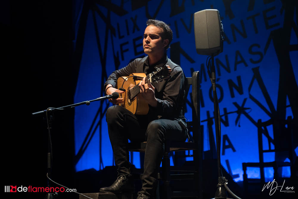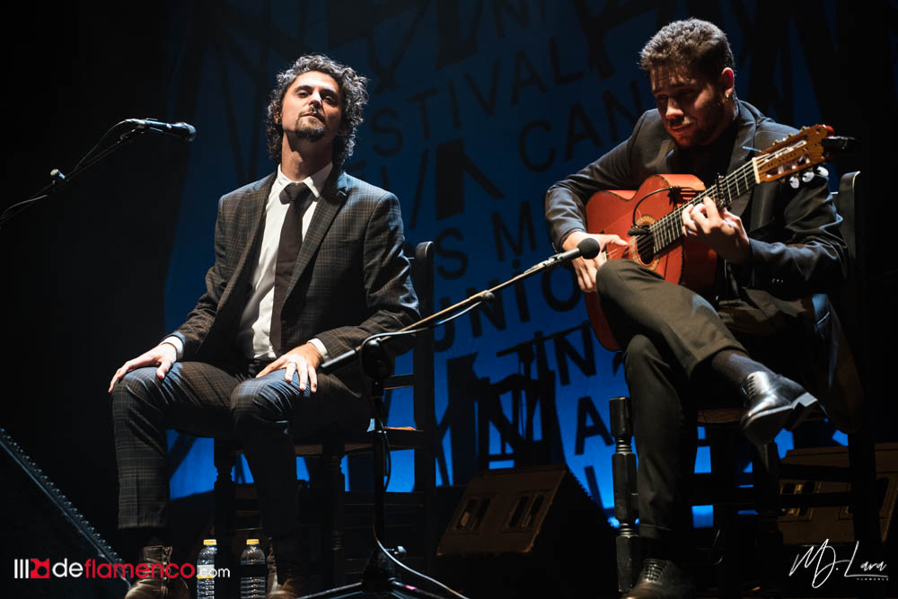 Turno para el cantaor barcelonés Matías López Expósito «el Mati”. Y a su vera, David Caro al toque. Comenzó por Mineras, dejando claro el poderío de su cante una vez más. Siguió por Tientos, libre, suelto en las subidas y bajadas de esa voz rasgada que eleva y modula en las alturas, y David luciendo dedos y falsetas sin despeinarse. Luego el Taranto, arriba, al 6º, y más de lo mismo, pundonor y honestidad en el cante minero. En la Taranta, erre que erre, y David luciéndose. Para concluir su actuación repitió por Seguiriyas. Y aquí fue el acabose: el Mercado en pie aplaudiendo y vitoreando la interpretación sangrante del barcelonés. La cosa comienza a escorarse a un lado… Pero solo podía haber un ganador.