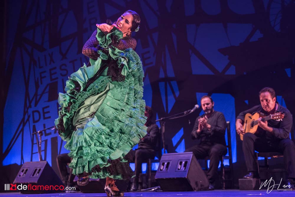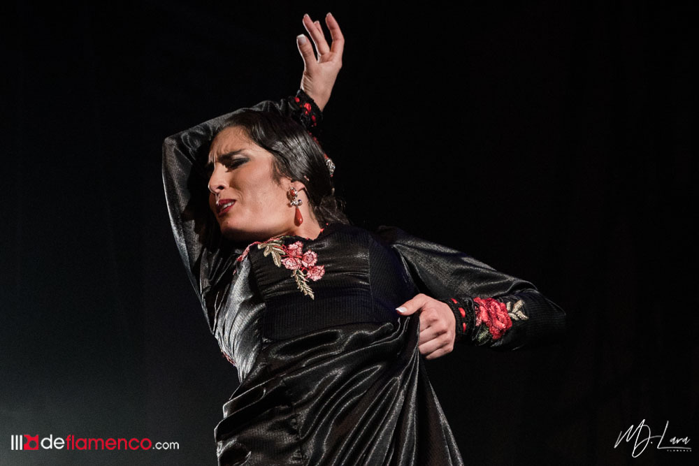 Turno ahora para Paula Comitré Juez. Comienza por Taranto. Ya, desde el primer zapateao, lo tenemos claro. Y así es, pues la furia de la sevillana arrasa con todo a su paso. Y para arriba y para abajo, y cintura quebrada, y manos y pies, y el manejo de la cola… El Mercado aplaude y jalea a la bailaora. En su segundo cante, Paula se viste de flamenca para bailar Alegrías, otro cante distinto a las Guajiras que nos regaló el viernes. Y de nuevo nos deja boquiabiertos con su baile. Aparece sentada en silla de anea a echar el resto tocada de mantón. Qué espectáculo disfrutar con la vista que nos mantiene ensimismados contemplándola; qué sabiduría en sus tiempos; cómo resuelve con el mantón, parte misma de ese cuerpo que maneja con soltura y compás. Fue despedida por público tan sabio en pie regalándole aplausos y olés más que merecidos… Pero solo puede haber una ganadora.
