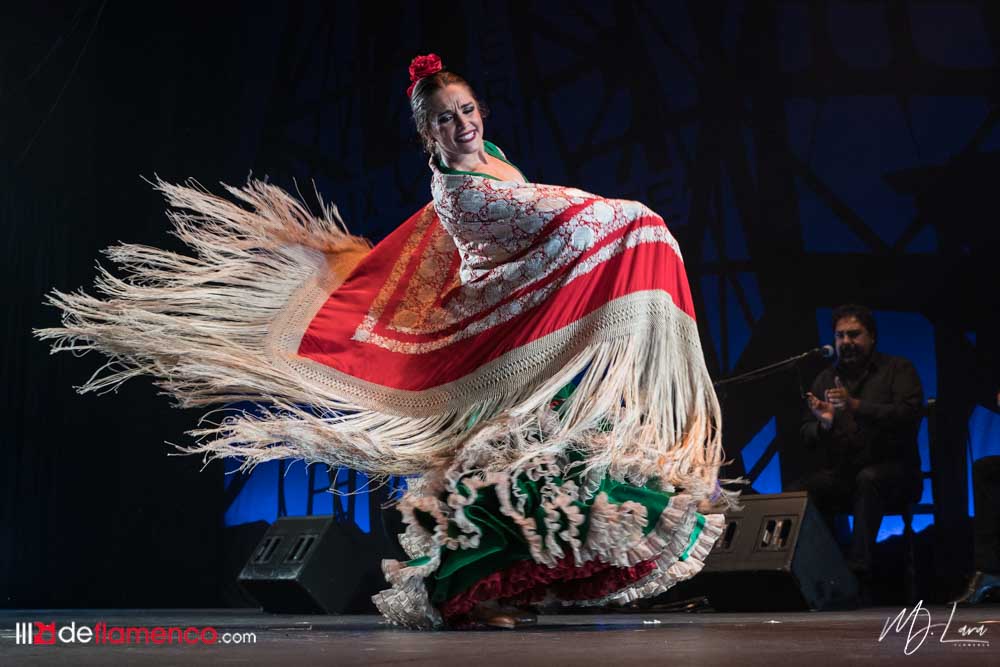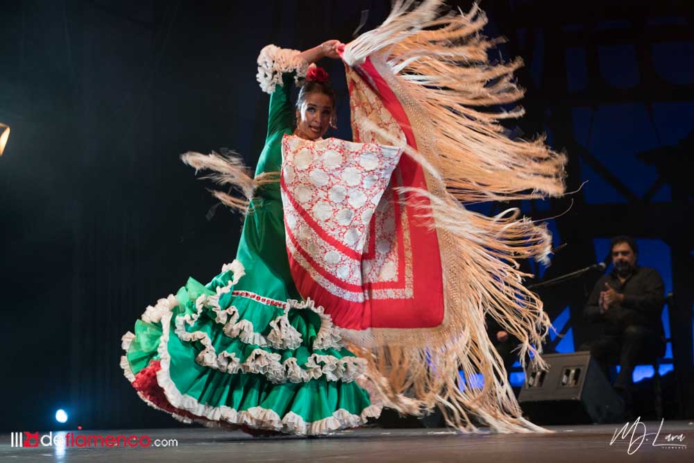 La primera bailaora en subir al escenario es Olga Aznar García “Olga Llorente”, esa belleza morena que nos embrujara en la semifinal del jueves. Y ya la primera sorpresa, pues elige Caracoles como su primer baile, un cante que no hiciera en su anterior actuación. Sentada en silla de anea, la bailaora, cubierta de mantón, ejecuta su baile ante los ojos del público asistente deslumbrados ante su Arte. Cómo se mueve esta señora; cómo usa todos los recursos inimaginables en el manejo del mantón. Qué graciosa está, y qué bien le sigue su cuadro. Espectacular. En su segundo cante, el Taranto, Olga repite la interpretación que la ha llevado a esta Final. Así nos atrapa de nuevo en su ir y venir, en sus desplantes y figuras, cadera, manos y pies que cobran vida propia. Un espectáculo el recital de la catalana. El público enloquece con la bailaora… Pero solo puede haber una ganadora.