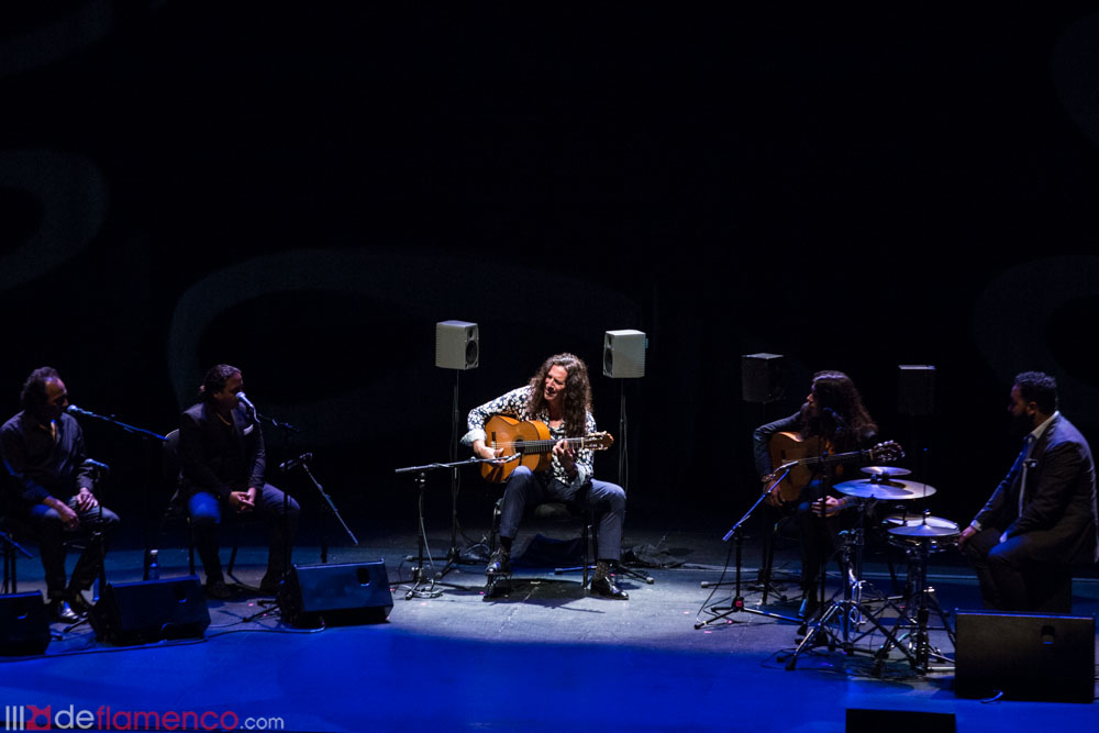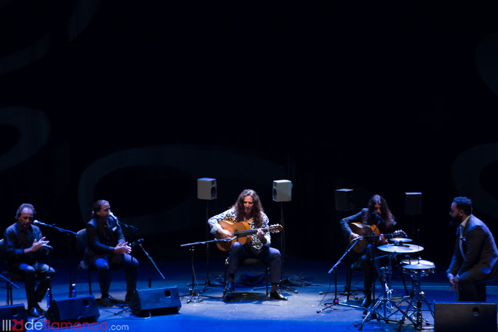 Una segunda parte nos entregó a Tomatito en lo suyo, con su hijo, José de Tomate, y los cantaores Morenito de Íllora y Kiki Cortiñas además de percusión y palmas. Hilos de música, algunos muy breves…rondeñas, trábili trábili, Entre dos aguas como recordatorio, La leyenda del tiempo, algunas notas de bolero y alguna propinita que iba y venía del Concierto de Aranjuez… fue como vislumbrar el interior del creativo cerebro de este tesoro nacional de la música. Y como siempre, Tomatito destacó al “mejor de todos los tiempos”, Paco de Lucía.