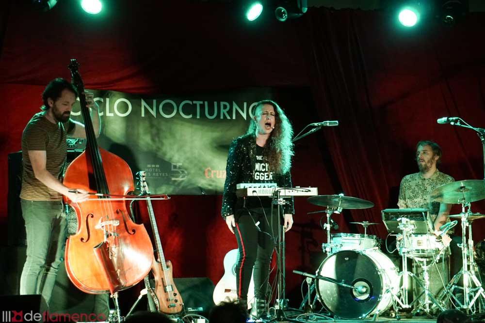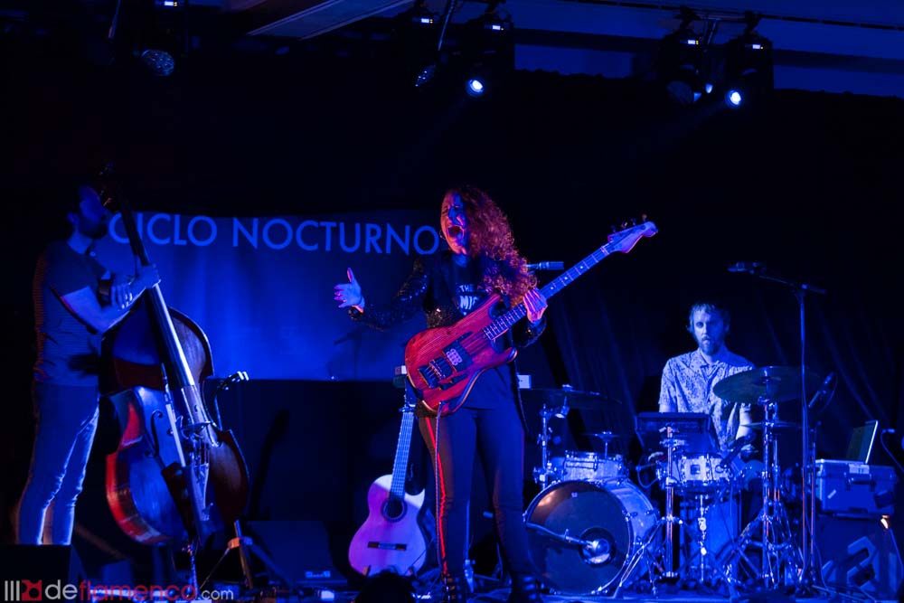 A las once y media, en la sala nocturna del Hotel Tres Reyes, Rosario “la Tremendita” aportó su creación “Delirium Tremens”, y jamás un título ha sido más acertado. Un delirio de estímulos vocales, percusivos y visuales hicieron el trasfondo de un recital sorprendente a diversos niveles, en función del gusto y generación del espectador. Cante, a ratos clásico… levantino, abandolao, el polo, soleá de Triana…todo pasado por ‘heavy’ y acompañado por Pablo Martín Caminero al bajo, y Pablo Martín Jones a la percusión.