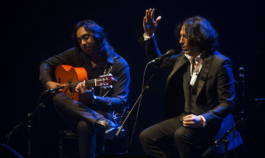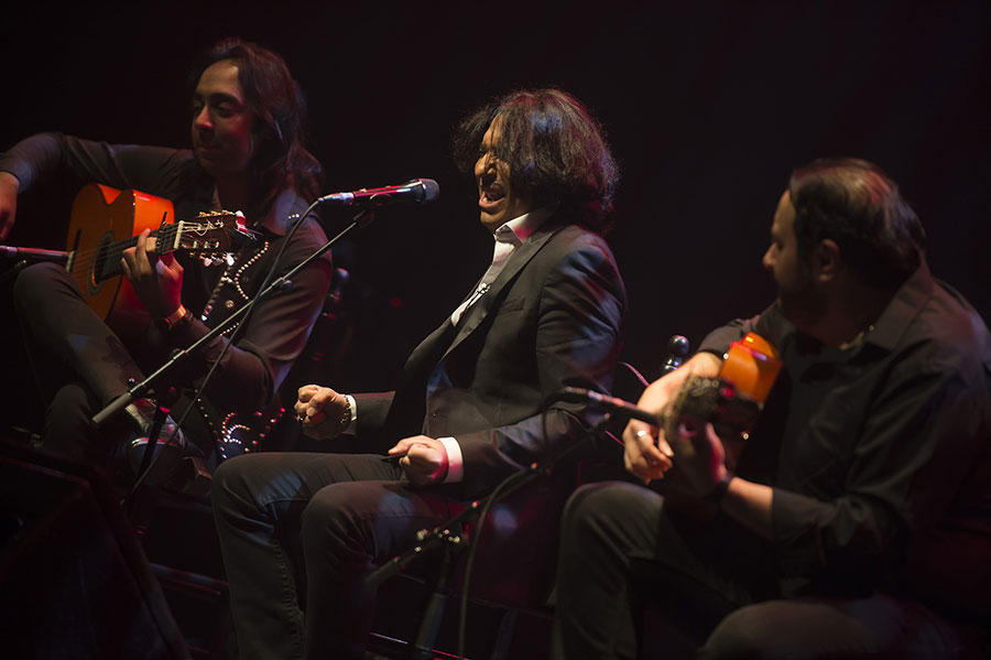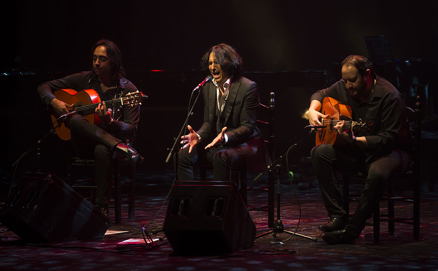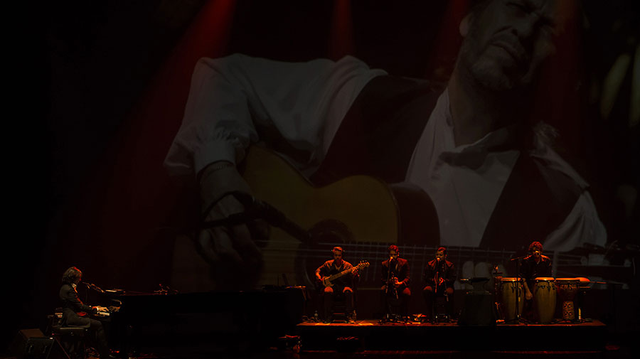 De momento volvió al centro del escenario para cantar flamenco con la guitarra de Carlos de Jacoba y después se sumó la de Jesús del Rosario. Eso mereció la aprobación de La Chana (que ha regresado triunfal con un libro y un documental) que, presente en la sala se levantó para poner su estola a los pies del cantaor. Fue un momento crucial porque, a partir de ese momento, se disiparon algunas disfunciones sonoras (producto de la complejidad de pasar de lo eléctrico a lo acústico y viceversa) y el concierto entró en fase Camarón, reproduciendo con pasmosa fidelidad el sonido de “La primavera” la composición de Juan Antonio Salazar que cantó el de la Isla en su última grabación con las guitarras de Paco de Lucía y Tomatito. Una labor arqueológica de reconstrucción que también alcanzó “la leyenda del tiempo”, la enrevesada composición que daba título a un disco incomprendido en su momento (1979) y que hoy escuchamos como una proclamación de un tiempo nuevo, con sus excesos del uso del “reverb” como hoy nos quejamos del exceso del autotune.