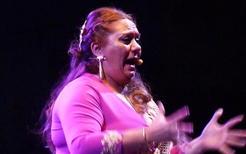 Qué lejos queda Eurovisión ¿verdad Reme? Ahora eres la dueña y manejas la barca tú solita. Remedios Amaya es una gran profesional con magna personalidad, tanta, que no sabes si hay más música o carisma, y tampoco importa. Su fraseo abierto se convierte en monólogo, y el numeroso público se pone en pie como una pieza una y otra vez. Por bulerías, empuja las posibilidades hasta los límites de su propia imaginación, matizando bestialmente.