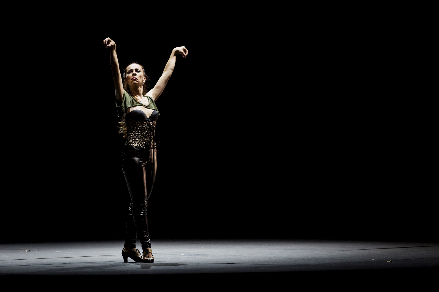 La obra, resumiendo mucho, es un relato de las supersticiones y los miedos que condenan a Isabel Bayón. Una terapia de choque en la que la bailaora se iba enfrentando uno a uno al habitual listado de mal farios y maldiciones (la escalera, el espejo, la sal, lo amarillo, bailar por peteneras…) para acabar completamente liberada. O mejor dicho ‘Azalvajá’, como canta la sevillana a pie de escenario en uno de los momentos donde más disfrutamos de su enorme potencial dramático.