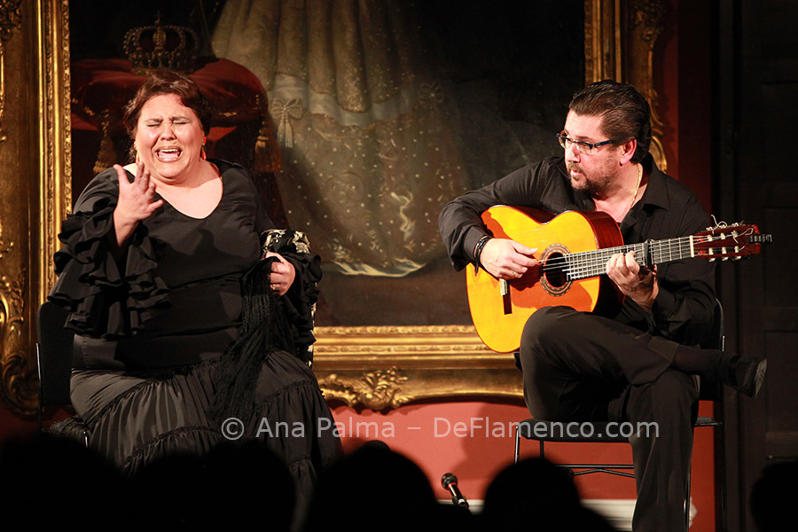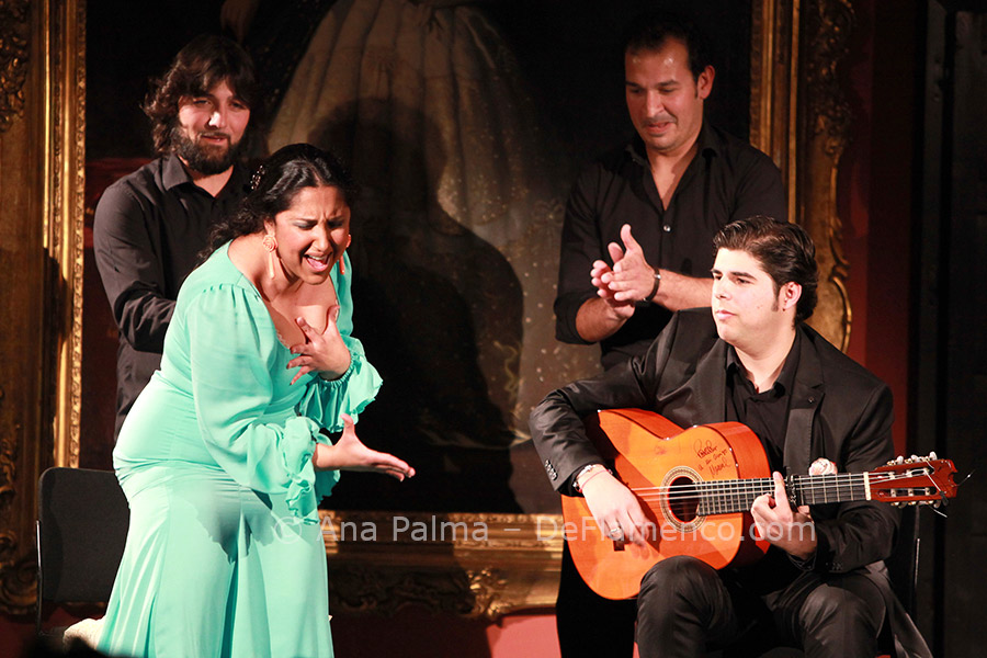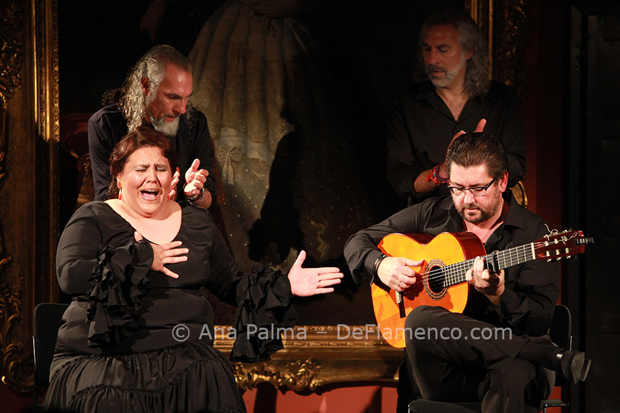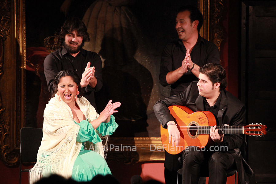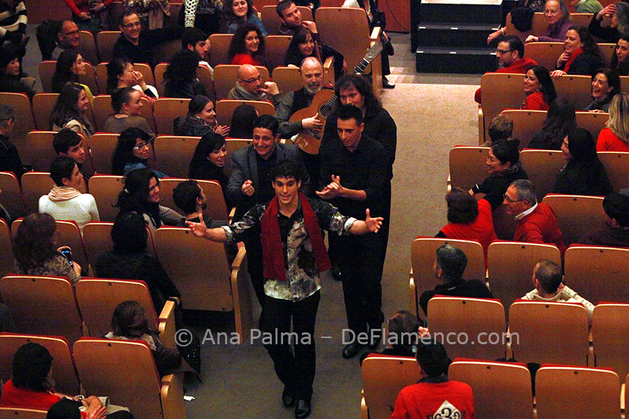 This young dancer, full of vitality and anxious to please, began directly with martinete with Palomar singing, who followed up with malagueñas to the highly stylized guitar of Rafael Rodríguez. This may be the only guitarist nowadays who shies away from contemporary harmony, preferring to update traditional flamenco guitar in his own way, and a fine job he does. Palomar interprets soleá de Cádiz and tientos tangos, and being from Cádiz, “somehow” all roads lead to tanguillos with classic verses. The young dancer delights the audience when they all sing, dance and play their way down the main aisle, in full swing, and return to the stage to end with bulerías. Lots of good clean fun.