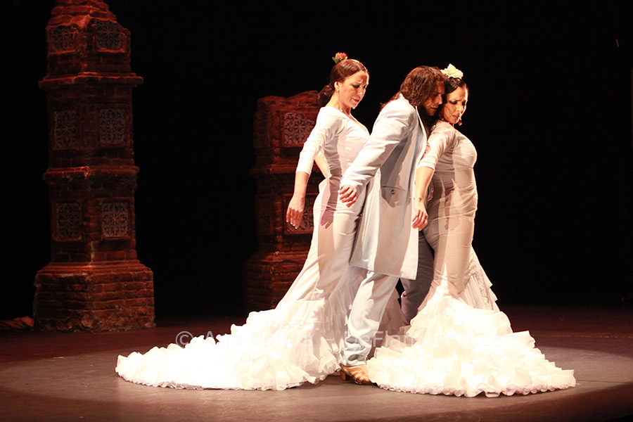 Let’s examine the problem… The program notes include a declaration of principles that really means business: “In this show, Domingo Ortega takes us back […] to the roots of flamenco, roots which in recent times have been forgotten, locked up in a box under lock and key as if showing the true essence of flamenco were something shameful. With this work Domingo aims to give flamenco back its worth and write in capital letters the word FLAMENCO”. I don’t know if anyone is capable of achieving such ambitious goals with just one show. But then the work is full of decidedly retro references…harmonized vocals, stale choreographies for the female dancers, two vocal solos of scant interest, the good ol’ rocking chair in front of the full-length mirror… More than “flamenco puro”, it’s old-hat flamenco.