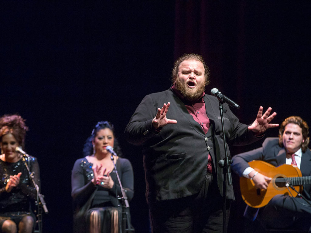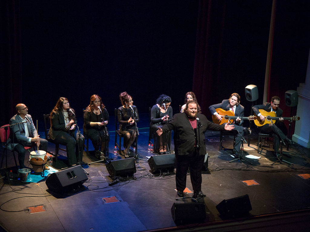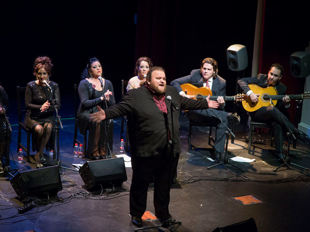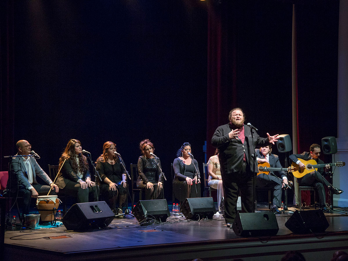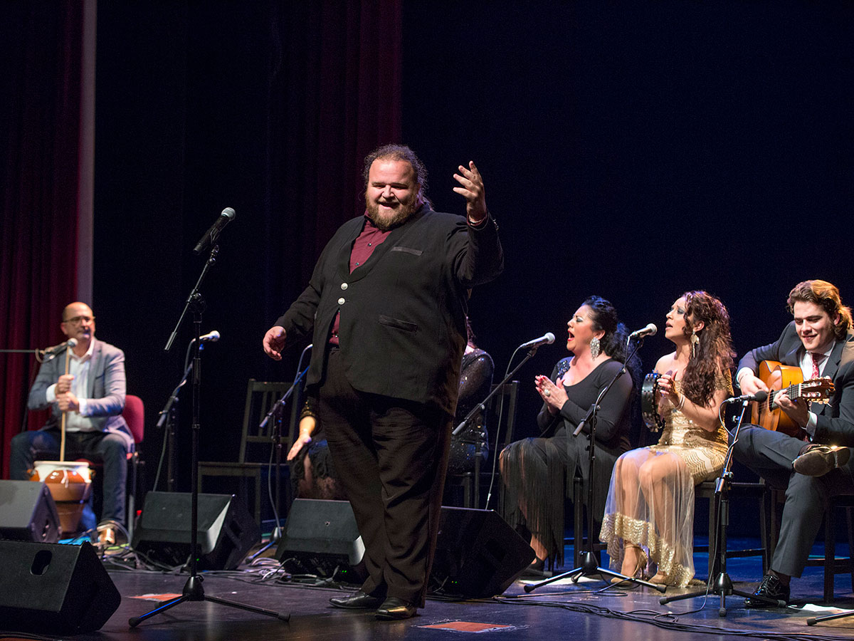 Tras esta introducción más recogida, el artista cedió el protagonismo al cuadro solvente, luminoso y enérgico formado por las cinco voces poderosas de Sandra Rincón, María del Mar Barea, Mari Ángeles García de Quirós, Gema la Cantarota y Tamara de Tañé, las guitarras de Paco León y Vicente Santiago y la zambomba de Israel López, encargado también de contagiar la alegría y el buen ambiente.
