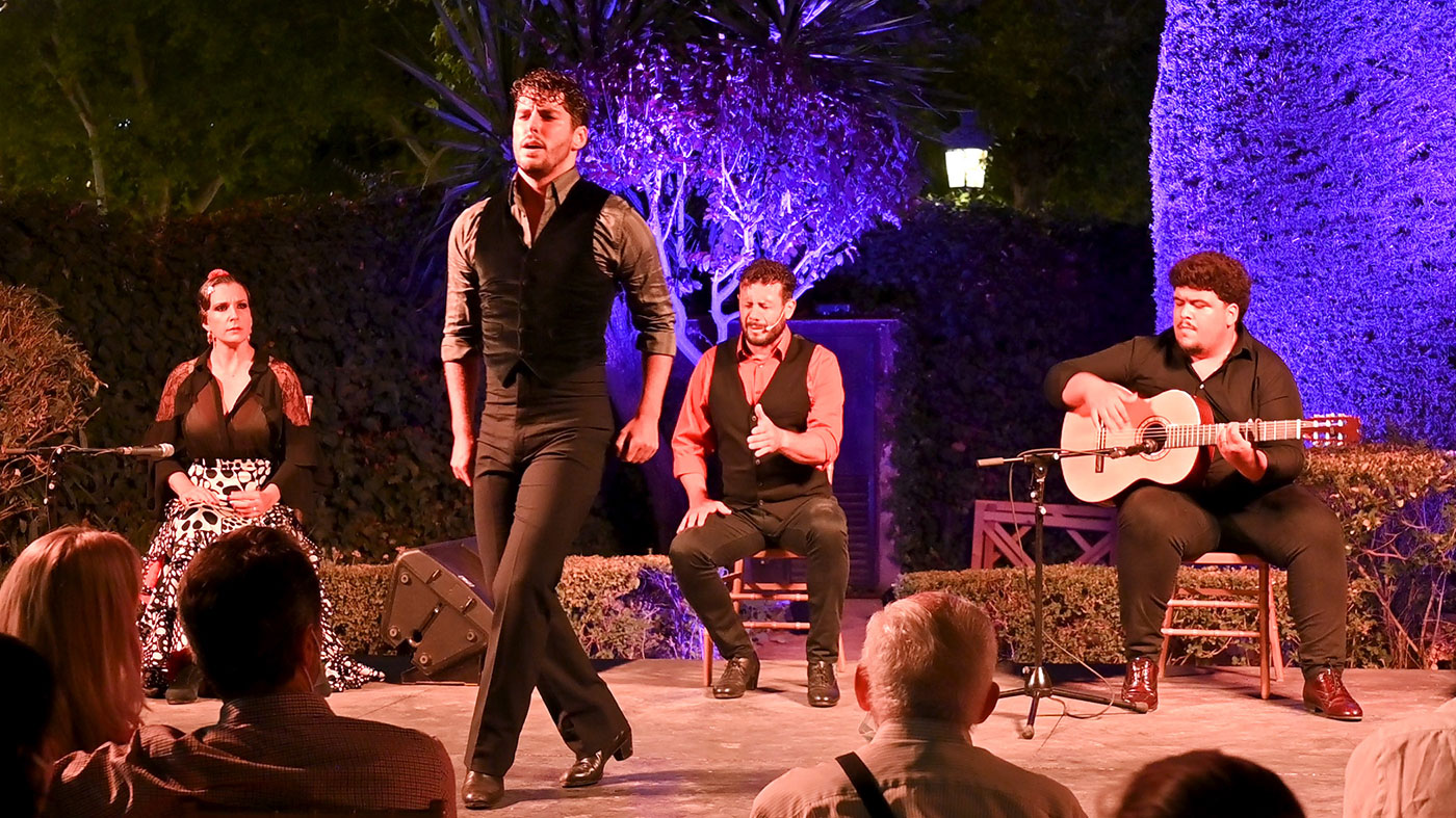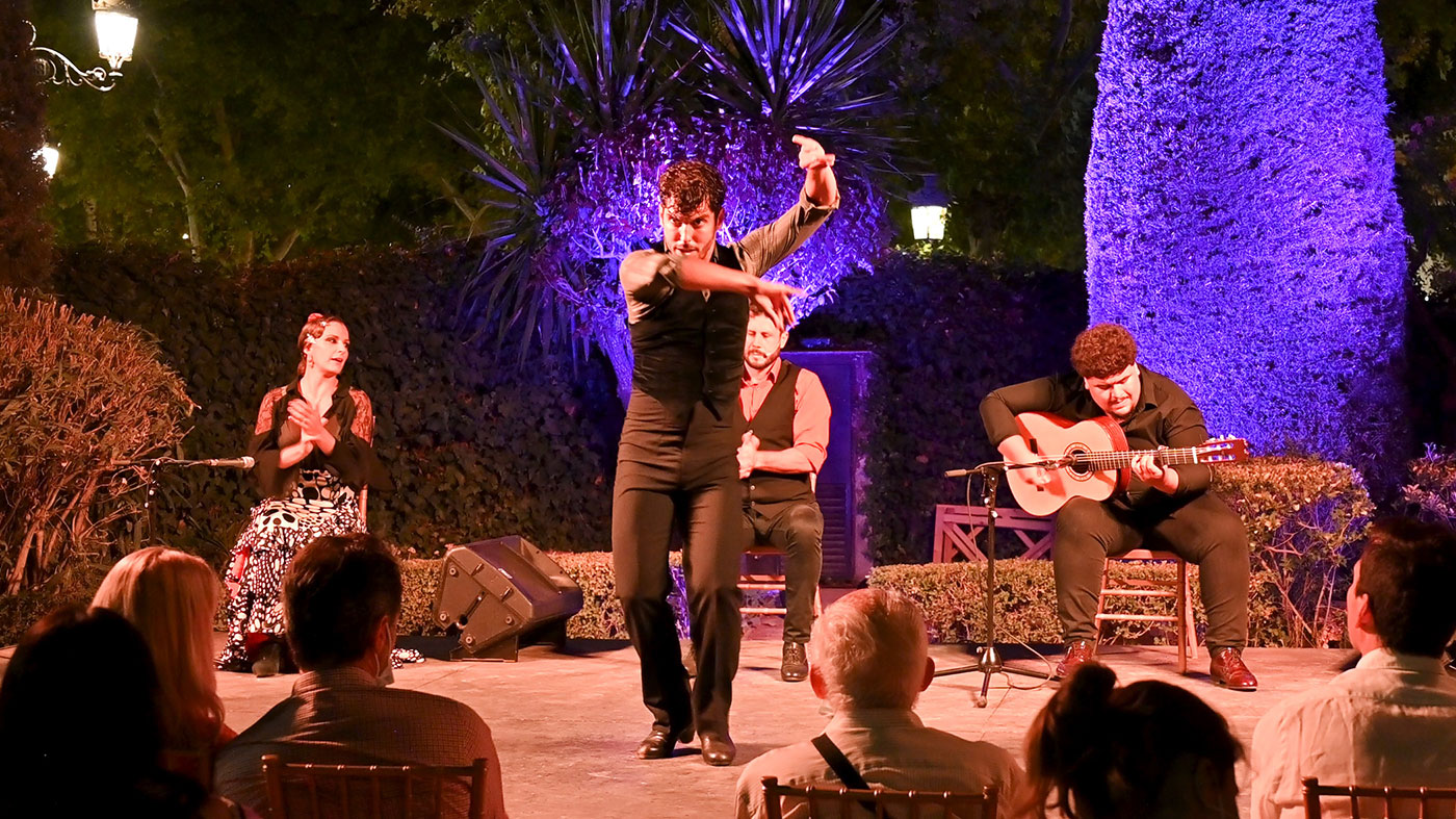 Baile: Luisa Palicio y Alberto Sellés. Guitarra: Jesús Rodríguez. Cante: Vicente Gelo. Ciclo: Flamenco bajo las estrellas de la Fundación Cristina Heeren. Lugar: Jardines del Hotel Alfonso XIII. Fecha: Jueves 20 de agosto. Aforo: Lleno