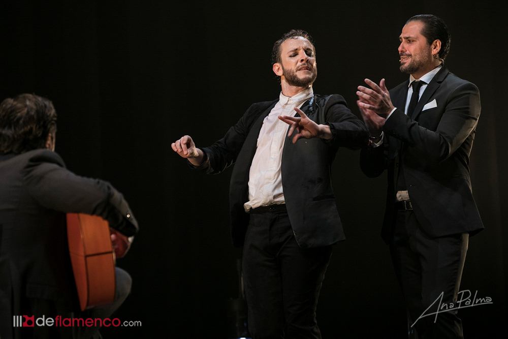 David Carpio hace un trabajo espectacular. Maneja con soltura muchos momentos sin guitarra que dependen de su voz y compás para mantener la coherencia. Entrega el cante más clásico…tonás, siguiriyas, marianas (Liñán encuentra inspiración en el compás binario como buen granadino que es), soleá de Triana, y la soleá de Carapiera para dar entrada a las alegrías, como hiciera Antonio Mairena en su día. El cante de David no sólo se apoya en su inmejorable procedencia familiar, sino que es un auténtico estudioso del cante.