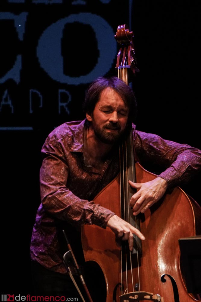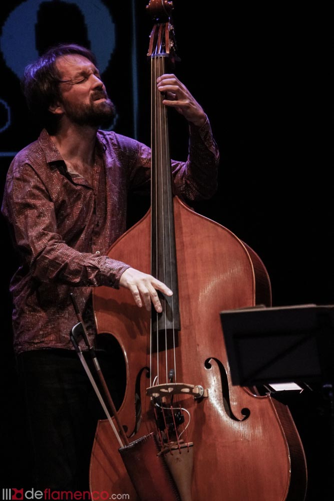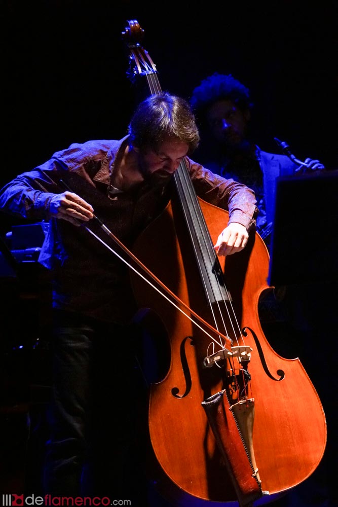 Pablo M. Caminero busca su lado flamenco en los últimos años al lado de Rocío Molina y Rosario La Tremendita así que el lector se puede ir haciendo a la idea de que está para ir a la Bienal o para triunfar alrededor del mundo. Si se están haciendo la idea de que el contrabajista es uno de esos músicos de jazz caóticos e imprevisibles se equivocan. El concierto de Pablo Martín Caminero y su O.F.N.I. (Objeto Flamenco No Identificado) ha sido el concierto de jazz más serio y rigurosamente planificado que he visto en los últimos 40 años, incluidos los de Wynton Marsalis. Recuerden que Wynton interpretó una soleá dedicada al festival de jazz de Vitoria donde aseguran que sonrió y levantó un ceja tras un baile de Tomasito.
