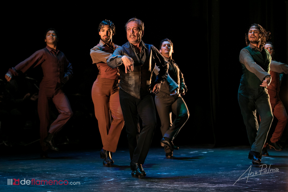 A las siete de la tarde, en la Sala Compañía, la Compañía José Barrios presentó su obra titulada “Reditum, bailando flamenco”. Es un trabajo en la línea discreta de extrema oscuridad que vemos a menudo en los ciclos consignados a este escenario. Una propuesta fundamentalmente sombría y oscura que a veces nos priva de poder ver las caras de los intérpretes, salvo por unos tanguillos tan luminosos y bien iluminados que parece de repente un error, a la vez que tus ojos se sonríen y dan las gracias. El baile de José Barrios se basa, casi en su totalidad, en combinaciones percusivas de los pies, separadas por breves descansos, además de un segmento en bata de cola…negra…por alegrías. También, siguiriyas, farruca y sevillanas, entre otras cosas. Las voces de Paco del Pozo, Ana Ramón y Sara Corea, la guitarra de Isaac Muñoz, los vientos de Diego Villegas y la percusión de Luis Dorado ambientan la propuesta, y el violinsta Victor Guadiana fue uno de los intérpretes más interesantes.