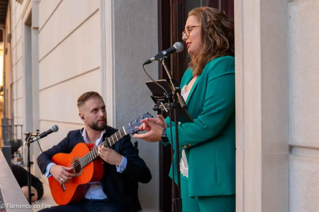 La jornada en Tudela comenzó horas antes en el balcón del Ayuntamiento, donde los hermanos Lorena y Bruno Jiménez, jóvenes artistas de Sangüesa, ofrecieron un recital que combinó cante y guitarra con un profundo respeto por el arte jondo. En su segunda participación en el festival, dejaron patente la solidez de su propuesta y la proyección de su carrera.