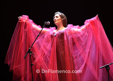 Dressed like a cross between a fairy princess and opera diva, she appeared on stage with her typical panache, solemnly reciting in old Spanish, verses which, like most everything else throughout the evening, seemed taken from the Morente legacy, and from his eternal questing. Out of a typical Sacromonte abandolao, came the granaína, bringing us to the four singing highpoints of the night, the cante Estrella cooked up and served with the sole accompaniment of a guitar: Tangos de la Vida, which the singer’s father was using right up to the end to close his concerts, taranta y taranto in a hopeful vein to ward off possible tears (which were also present), a very slow soleá (this reminded me of the soleá sung by Enrique two years ago with Juan Carmona junior in honor of Miguel Candela, with whom he’ll be facing-off with a game of dominos) and, above all, a siguiriya that raised goosebumps.