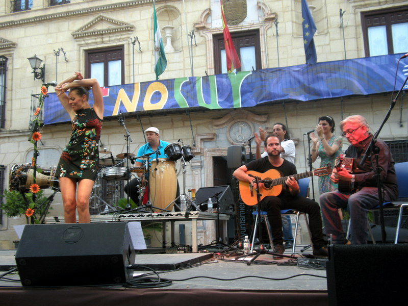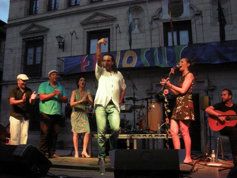 In recent years, flamenco has found a niche in these ethnic encounters. Jerez artist Carmen «La Chocolata» opened the concert series in the plaza of the Town Hall on Friday the 17th, with her refreshing pseudo flamenco show, spiced with Tex-Mex. Accompanied by Fran Gómez on guitar and Cuban tres, Cuni Mantilla on upright bass, Jesús Santiago on percussion, in addition to Angel Amaya and Juan Larreta doing palmas, they gave a good lesson in combining flamenco rhythms with those from other musical genres, and got the audience dancing throughout the recital, most of whom cared little about flamenco. But without a doubt the climax of the evening came when the legendary Manuel Imán appeared on stage. The Seville guitarist had come as guest artist, but soon upstaged Chocolata. Together they delighted the audience with tangos and buleríás, Jimi Hendrix' music and his unique version of «La Llorona», and the fiesta finale with fandangos. Without a doubt this is one of the most versatile artists of the flamenco panorama; she sings, dances, recites beautiful Hispanic verses and immediately wins over audiences, we can't wait to see her new record on the market.