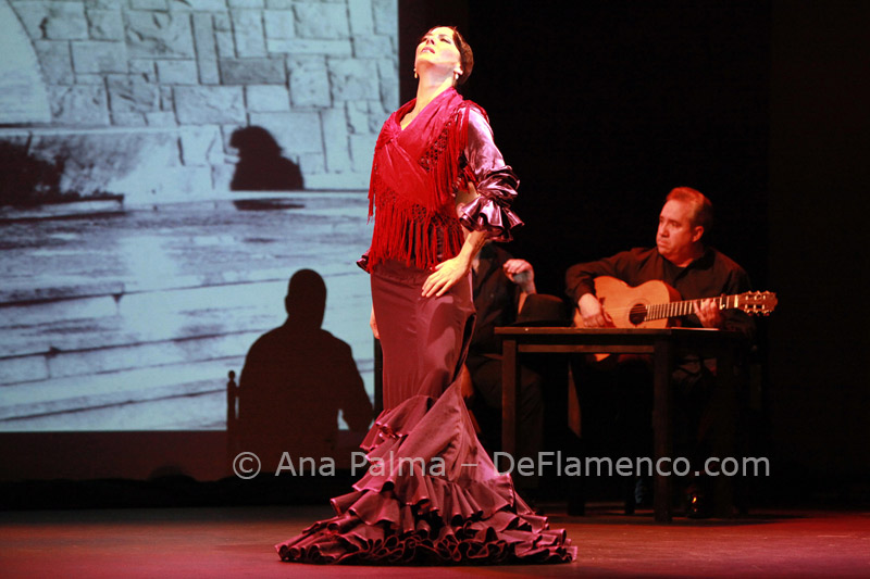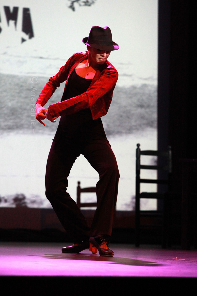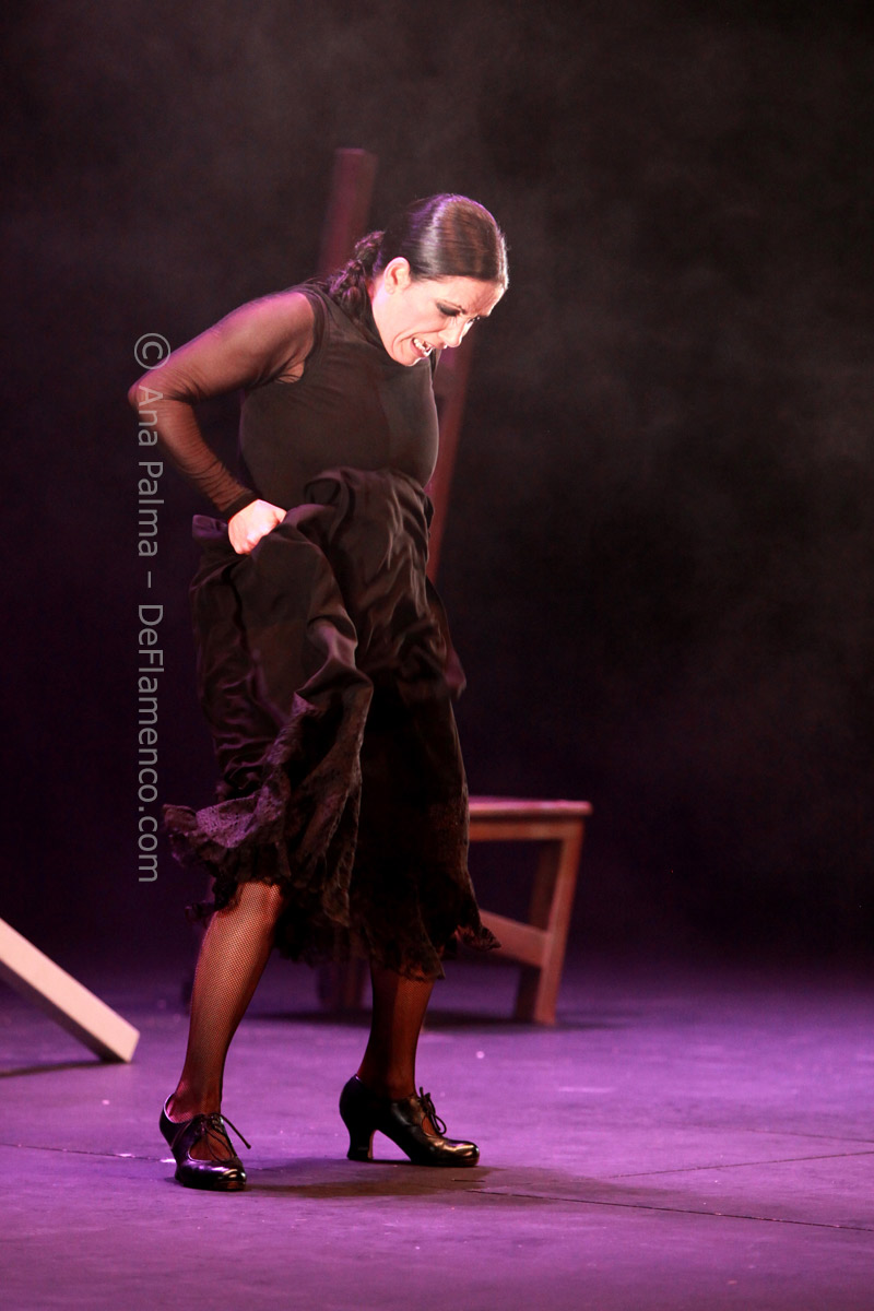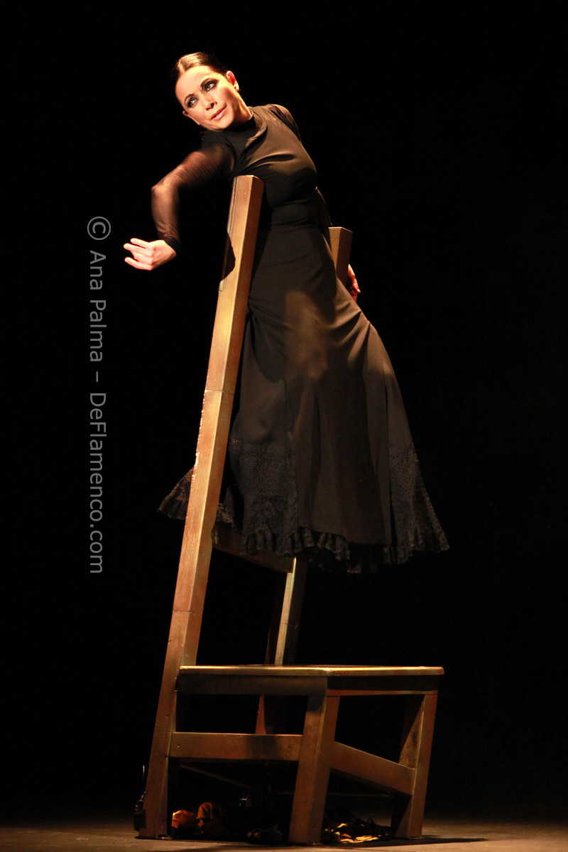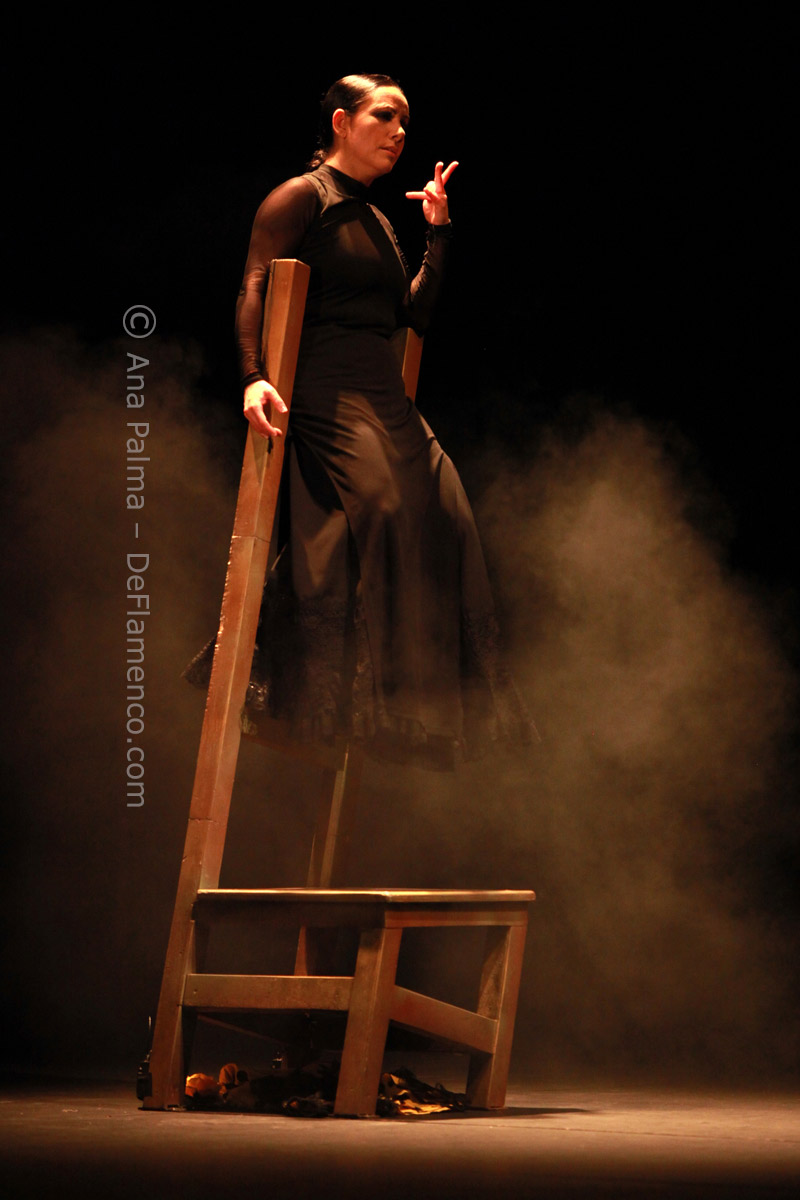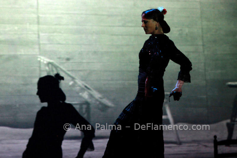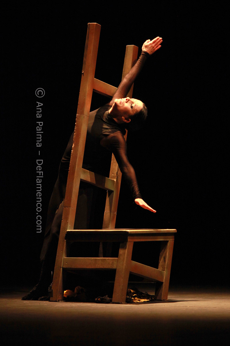 Estos difíciles momentos catárticos suelen ser expresados hacia el comienzo de las obras de Eva…la lentitud, el silencio…(miras el reloj)…movimientos repetitivos que anestesian la mente… No es agradable para la mayoría, y siempre alguno se levanta y abandona el teatro. Pero tenemos la enorme recompensa del atrás inmejorable con las voces de Enrique Extremeño, José Valencia y Juan José Amador, que además ofrecen solos de cante mucho más sustanciosos que un simple relleno, la guitarra (y música) siempre idónea de Paco Jarana, la original y sensible percusión de Antonio Coronel y el acertado violín de Nazar Yasmytskyy.