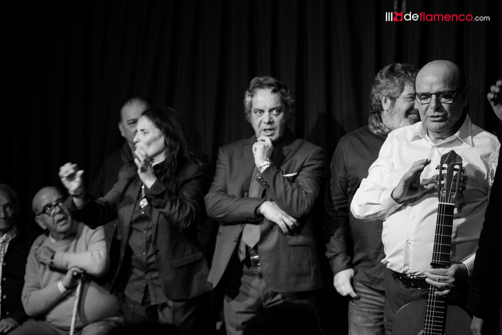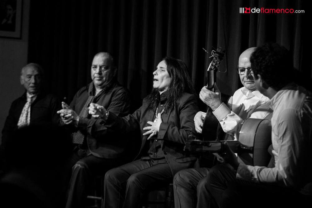 Se arrancó “El peregrino” a un baile suyo venerable que es descrito en el papel como “anarquicamente institivo y puro” y cuando todo apuntaba a la ceremonia, los artistas fueron generosos con la familia y cedieron el sitio a la rama madrileña de los descendientes de Porrina de Badajoz. Cantó Guadiana una pincelada y el protagonismo pasó a Juan Cantero que unos segundos contó una película neorrealista: “Primero me hice mi chabola y luego me compré un tocadiscos para aprender de los mejores porque vine de Extremadura sabiendo cantar por tangos na más” y así metidos en la fiesta se nos fue la oportunidad de escuchar más y mejor a la Kaita, fue por una buena causa, para descubrir los eslabones del arte de Badajoz con la figuras madrileñas como Ramón El Portugués gozando en el escenario con la garganta apagada.