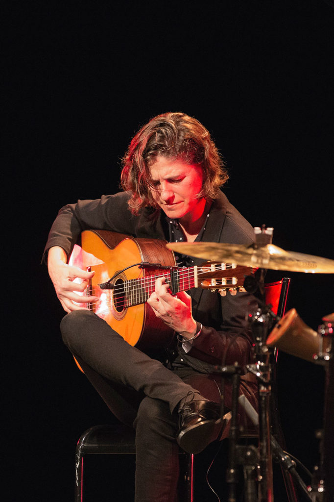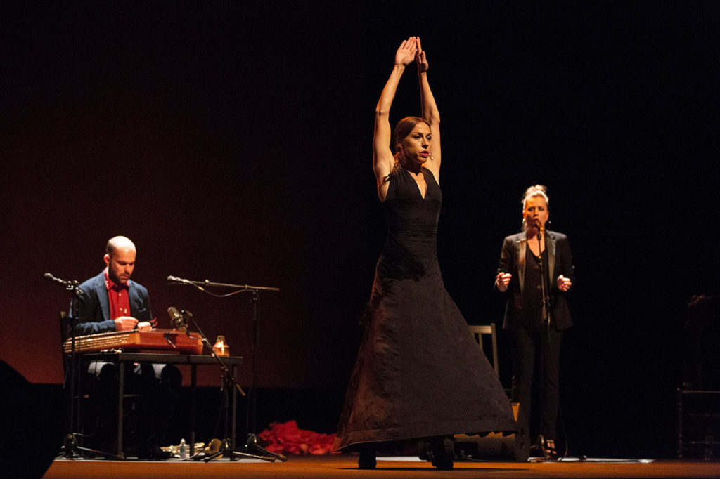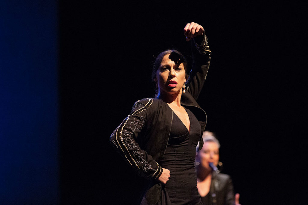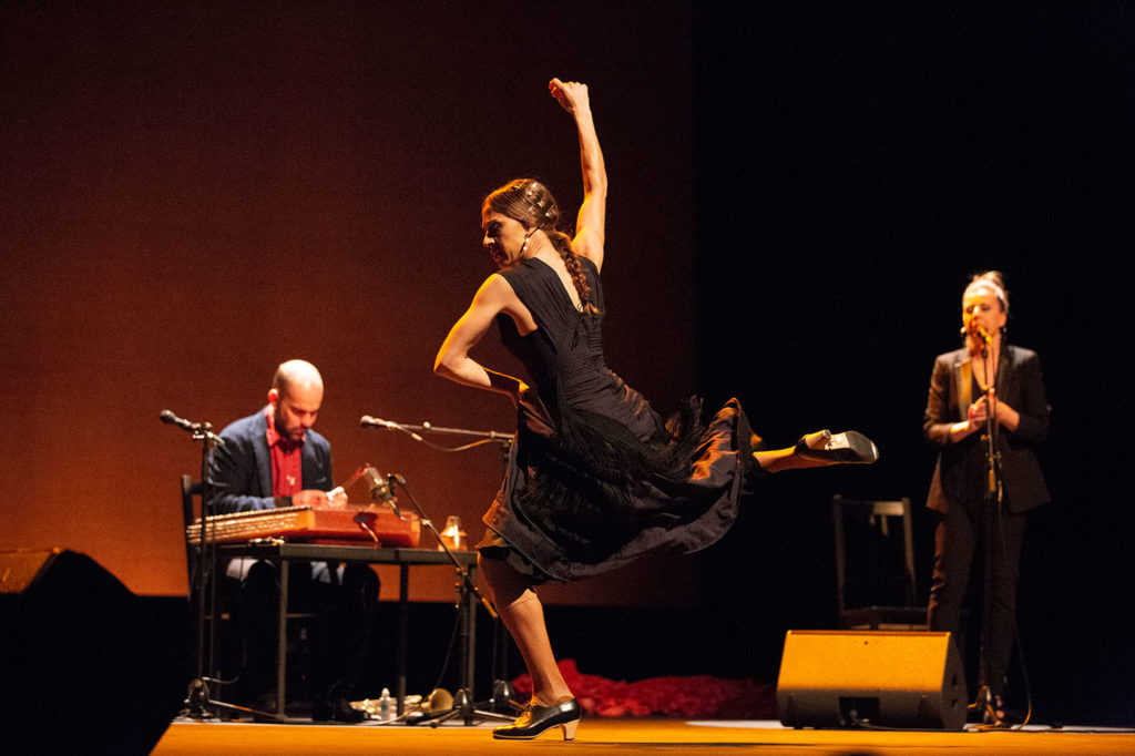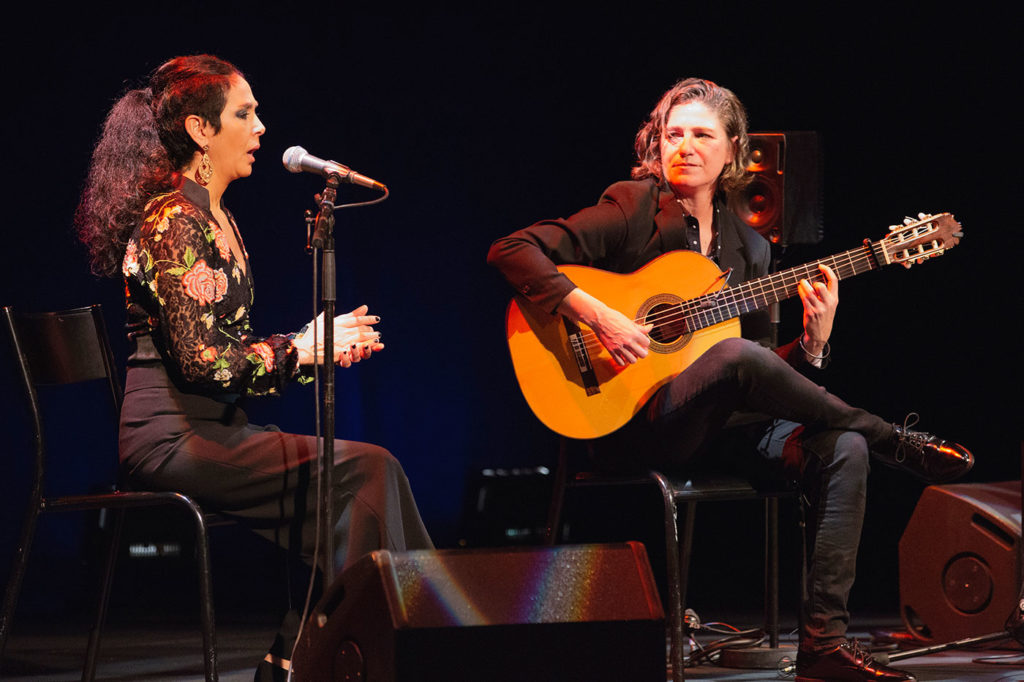 El miércoles por la tarde el recital de la guitarrista Antonia Jiménez de Puerto de Santa María nos recordó que la señora es una maestra que a estas alturas damos por realidad consumada. Y por la noche en el Teatro Bernadette Lafont vimos el exótico recital del músico norteamericano Amir El Saffar que lleva años investigando y tocando una combinación de música iraquí tradicional con elementos de jazz y también flamenco, en este caso con la fascinante voz de Gema Caballero y el baile de Vanesa Aibar.