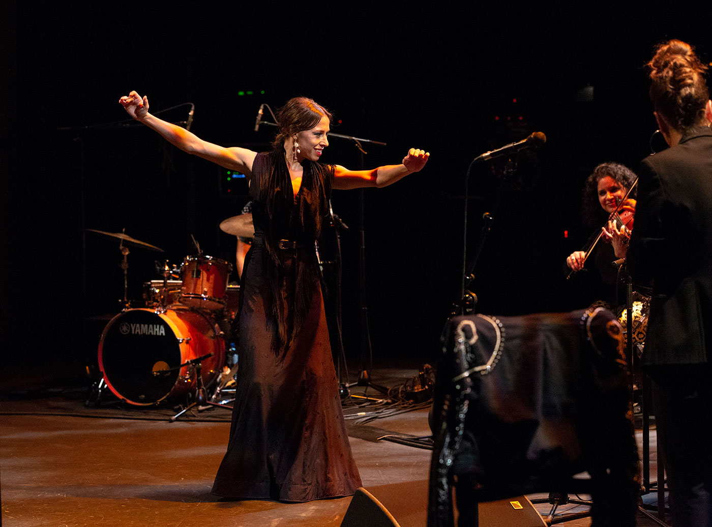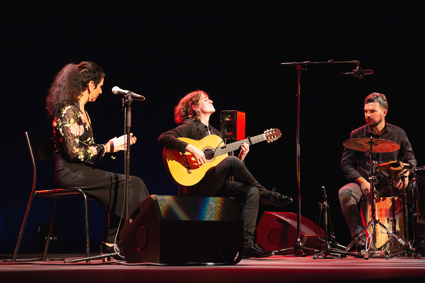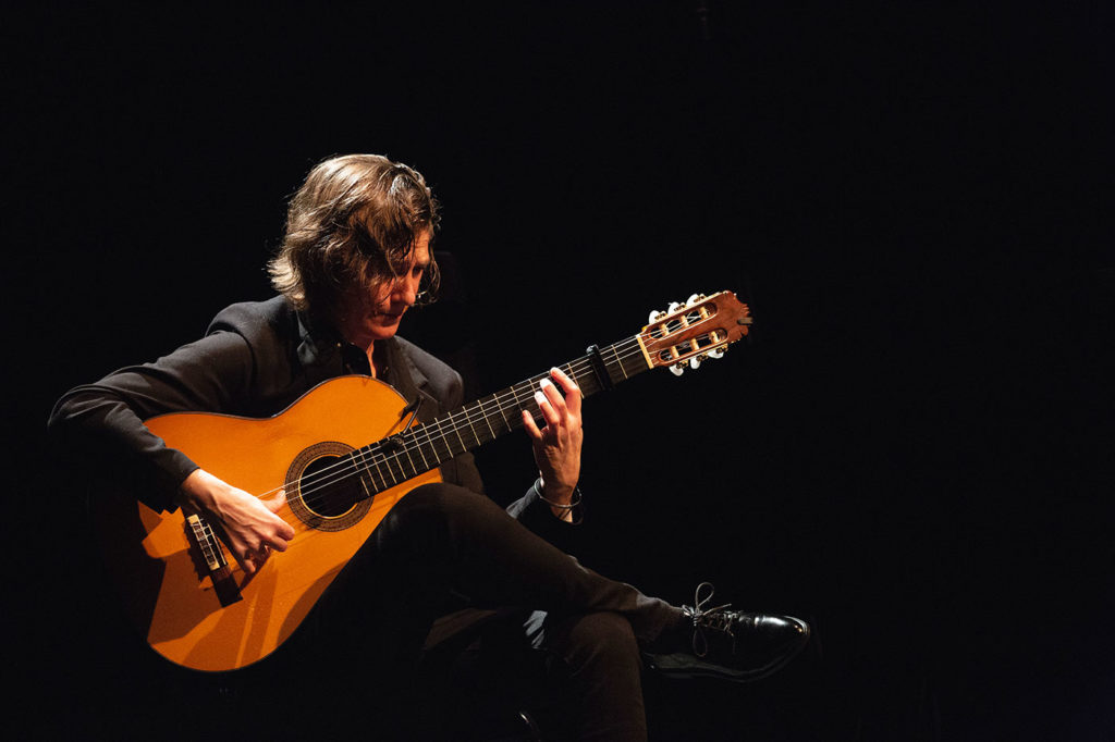 El miércoles por la tarde el recital de la guitarrista Antonia Jiménez de Puerto de Santa María nos recordó que la señora es una maestra que a estas alturas damos por realidad consumada. Y por la noche en el Teatro Bernadette Lafont vimos el exótico recital del músico norteamericano Amir El Saffar que lleva años investigando y tocando una combinación de música iraquí tradicional con elementos de jazz y también flamenco, en este caso con la fascinante voz de Gema Caballero y el baile de Vanesa Aibar.