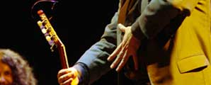 Part one. Diego Carrasco, cante, dance, guitar. Ané, percussion Text: Estela Zatania Breaking the ice of an especially cold winter, once again the Festival de Nimes in the south of France brings all the warmth the best flamenco has to offer with a varied, high-quality program On Saturday the 17th and Monday the 19th, there had been preliminary shows with young hopefuls and French artists, and by Tuesday the 20th the people of Nimes were fully prepared to receive flamenco in one great gulp with the expansive, indescribable personality of Diego Carrasco. The charismatic man from Jerez who has been featured so many times in this festival, came with a minimalist format: his guitar, his voice, his son Ané on percussion and our mother compás who art in the flamenco heaven of Jerez, enveloping the city in an invisible sheltering force-field. Visually, not that different from the classic presentation of a singer and a guitarist that many flamenco fans are accustomed to. And yet, something else entirely. Because Diego Carrasco knows the rules of the game, and he pushes them to the absolute limits, always calculating diabolically well to abstract the essence without hurting the structure. For some, he goes too far. Others instinctively and immediately get the message, even in an audience of non-Spaniards.