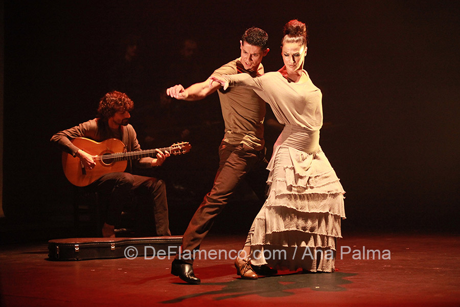 En el Teatro Villamarta, tuvimos la oportunidad de ver una interesante colaboración de tres hermanos: el baile de Adela y Rafael Campallo, con la guitarra y dirección musical de Juan Campallo. No sé si el título «Sangre» es un pequeño guiño hacia los gitanistas más radicales que sólo entienden el flamenco como cadenas de ADN, pero la cosa es que también los que no son de la etnia tienen vivencias propias, viven el flamenco como tradición familiar y se manifiestan a través de su arte compartido. De hecho, hoy en día hay otras parejas de hermanos bailaores, más notablemente las de Israel y Pastora Galván o Juan y Pilar Ogalla, pero han colaborado relativamente poco en el escenario.