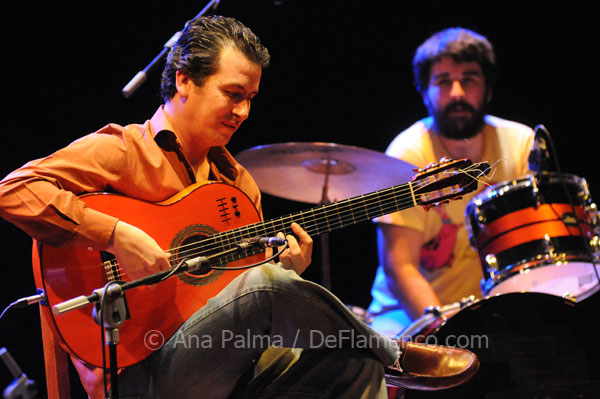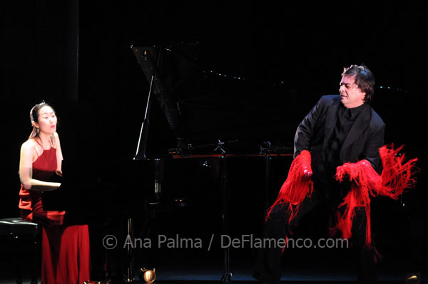 KAREN LUGO. Cante: Pedro Obregón, Gema Caballero. Guitarra: Amir Haddad, Claudio Villanueva. Percusión: Kike Terrón. Coreografía: Karen Lugo. Música: Amir Haddad, Claudio Villanueva. Texto: Estela Zatania El séptimo día del Festival de Jerez había un programa variado que prometía ser interesante. A las siete de la tarde en la Sala Compañía, dentro de la serie “Los Novísimos”, dos jóvenes bailaoras de planteamientos radicalmente diferentes compartieron recital. En la primera parte, la mexicana Karen Lugo aportó un estilo de baile flamenco que casi llamaría “internacional”, que no depende de ningún bagaje cultural ni de afición al cante. De hecho, es un estilo claramente inspirado en la danza contemporánea como se plasmó en el siglo pasado: la desconexión y movimiento independiente de la cabeza y extremidades que da un aire de breakdance. Es un concepto que Karen domina extraordinariamente bien, aunque en los primeros bailes es más bien el concepto que le domina a ella. Su fina figura embutida en un traje de pantalón ajustado, es un poema de rígidas posturas geométricas, admirable a su manera, aunque cueste resistir la comparación con una actuación de gimnasia rítmica. Termina por solea, ahora con vestido, y aquí sí las considerables facultades de la joven están al servicio del arte, y el aroma a flamenco llena la sala. La jerezana Saray García tuvo la segunda parte del recital para exponer su concepto clásico del baile. Escasíma iluminación, que ya es la norma, y no la excepción; se ha cambiado el tópico de los lunares por el tópico de lo negro. Con un atrás de siete jóvenes jerezanos, Saray interpretó alegrías absolutamente tradicionales. Y tan tradicionales. Una ronda de tonás da la entrada a siguiriyas, un baile académico, bien ejecutado y sin sorpresas. Qué difícil encontrar un término medio entre la ciencia ficción y el estancamiento… SERENATA ANDALUZA. Piano: Mie Matsumura. Baile: Antonio Canales, Leonor Leal. Cante: José Valencia. Guitarra: Eugenio Iglesias, Miguel Iglesias. Palmas: Bobote. Idea original y dirección: Javier Puga. Texto: Estela Zatania A las nueve de la noche, un recital de piano basado en composiciones de los maestros Manuel de Falla, Isaac Albéniz y Enrique Granados fue la oferta principal del día. ¿Recital de piano en un festival de baile y danza? Anoche en el Teatro Villamarta, esa pregunta colgaba en aire durante la hora y pico que duró la intervención de la pianista Mie Matsumura. Al no tener criterio para valorar las interpretaciones de ningún pianista, me remito a su presencia en el festival como aval absoluto de su competencia y preparación. Sólo puedo ofrecer algunas observaciones relacionadas con la parte flamenca que me toca. Se supone que la inclusión de Antonio Canales, después de cinco años de ausencia del festival, obedece a la necesidad de justificar este tipo de programa en el Festival de Jerez. A mi juicio, el veterano bailaor sigue siendo figura máxima del baile, uno de los grandes. La genialidad de un artista, una vez demostrada, no puede serle arrebatada con la merma natural de las facultades, como tampoco denigramos a los grandes artistas fallecidos. Pero ni el peso de la personalidad de Canales que bailó por soleá, ni el apoyo de la competente joven bailaora Leonor Leal, fueron capaces de aflamencar una velada pianística con poca energía flamenca, a pesar de los mejores esfuerzos de la protagonista. El momento de mayor interés, ha sido las cantiñas a bocajarro del cantaor José Valencia, solo y de pie al borde del escenario. El público reaccionó correspondientemente, emocionándose con ese brillo y ese compás, como una carga eléctrica, un destello de flamencura tan llamativo como el telón de fondo de color rojo vivo que hacía juego con la camisa del cantaor. JUAN DIEGO Y JORGE GÓMEZ “MIXTOLOBO” Guitarra flamenca: Juan Diego; Guitarra eléctrica y acústica: Jorge Gómez; Bajo eléctrico: Ignacio Cintado; Percusión: Juan Peña “El Chispa”. Texto: Manuel Moraga Qué pena que el sonido no dejara disfrutar todo lo posible de esta propuesta… Aunque casi mejor, sería empezar esta crónica por lo importante: A veces tiene uno que resetear el cerebro para entrar lo más virgen posible a un espectáculo de encuentros musicales y evitar comparaciones o prejuicios, que tan negativos son las unas como los otros. Pues bien, anoche no hubiera hecho falta porque esta formación tiene muy claro el concepto de lo que llevan entre manos y, por tanto, imprimen su personalidad a la música que hacen. Juan Diego –lo hemos dicho en varias ocasiones- es un guitarrista excelente que sabe combinar la viril jerezanía con la creatividad y la más dulce sensibilidad, aunque en mi opinión, la electrificación del sonido de su guitarra le perjudica. Por su parte, Jorge Gómez es un curtido guitarrista que ha recorrido fundamentalmente caminos rockeros pero que conoce perfectamente el sentido musical y expresivo del flamenco. Esa sintonía entre uno y otro y esa claridad de ideas se transmite en el escenario. Sonidos guitarrísticos del mejor R&B de siempre se articulaban a ritmo de bulería, tangos o seguiriya. La soleá, por ejemplo –entre flamenca y bluesera- es una pieza memorable. Y si a eso le sumamos el magnífico trabajo de Ignacio Cintado y El Chispa, el resultado queda perfectamente redondeado. Destacar también el cante ¿de? Eso me gustaría saber a mí…Porque los dos chicos que acompañaban a las palmas hicieron unos muy buenos cantes por soleá y seguiriya… Me gustaría dar sus nombres, pero no los encuentro por ningún sitio. El aspecto negativo, como decía al principio, estuvo en el sonido. La sala en sí ya es difícil de sonorizar, y más si entran instrumentos como la batería o los eléctricos. La estructura y sonoridad propia de los espacios hacen a veces que sea casi imposible sacar un sonido digno. Los primeros temas fueron un sufrimiento consta