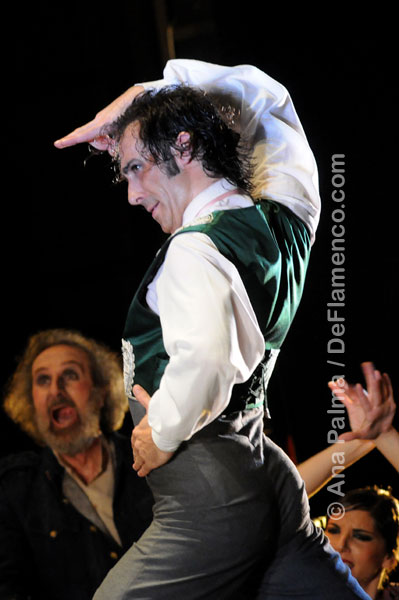 Ballet Flamenco de Andalucía Texto: Estela Zatania BANDA SONORA LORQUIANA Guión y dirección escénica: José Carlos Plaza. Coreografía: Cristina Hoyos. Música: Pedro Sierra. Bailaoras: Cristina Gallego, Rosa Belmonte, Marí del Mar Montero, Rocío Alcalde, Patricia Ibáñez, Zaira Santos, Marta Arias. Bailaores: José Luis Vidal, Jesús Ortega, Jacob Guerrero, Javier Crespo, Daniel Torres, Abel Harana, Juan A. Jiménez. Cantaores: Fabiola, Vicente Gelo, David Carpio. Guitarras: Andrés Martínez, Ramón Amador. Percusión: Roberto Carlos Jaén. Con la actuación del Ballet Flamenco de Andalucía bajo la dirección de Cristina Hoyos, queda inaugurada la décimo cuarta edición del Festival de Jerez. La ciudad se ha llenado de caras extranjeras, y hoy a mediodía cuando hubo cante espontáneo en una terraza cerca de la plaza Arenal, una japonesa se puso a bailar por bulerías y al instante se formó un gran círculo de entendidos dando palmas y ambientando la fiesta. Así está el ambiente, y durante dieciséis días Jerez sin fronteras, normalmente más dado al cante y a la guitarra en lo que al flamenco se refiere, será la meca mundial del baile y la danza española. La noche empezó con la voz de Isamay Benavente, directora del festival, lamentando la ausencia en el programa de Fernando Terremoto que falleció hace pocos días, y pidiendo que el primer aplauso del festival fuera para él. Aquel homenaje quedaría como el momento más emotivo de una noche larga y coreográficamente plana a pesar de los mejores esfuerzos de un numeroso y bien preparado elenco, el obvio empeño de la responsable de la compañía, Cristina Hoyos, y una pingüe inversión económica.