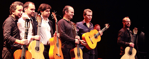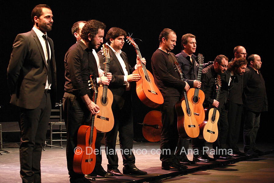 Eso que expresa resuena en la sala, retumba en cada nota que ejecutan los seis guitarristas que fueron al Teatro Villamarta a homenajearlo. Porque se nota esa obsesión de la que hablaba Paco en el sabor de Manuel Valencia; en la superdotación de Alfredo Lagos; en los estudiados silencios de Bolita; en la destreza y el buen gusto de Juan Diego; en la pulsación veloz y deliciosa de Santiago o en la furia creadora de Gerardo. En todos ellos se ve eso de lo que el maestro habla en los vídeos que de él nos han quedado. En todos y cada uno de esos músicos se perciben las penurias del alma que ocasiona el deseo de perfección; en todos se vislumbra la locura que origina el ansiar la soledad para seguir ensayando una y mil veces, para componer, para estar a la altura de la última vez.