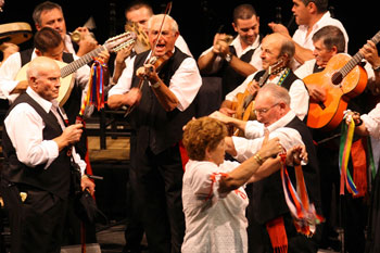 Con ese buen preliminar, la Panda de Comares con su Medalla de Oro al frente, Paco Maroto, principió la actuación llegando desde la puerta de la calle hasta las entrañas del teatro donde dejaron constancia de por qué se encuentran entre las pandas más ensoleradas del género. A renglón seguido los guitarristas solos tomaron el escenario para en toque por abandolaos, dirigido por Paco Javier Jimeno, dar muestra del buen momento guitarrístico de esa generación que representaron los cuatro de ayer, Chaparro, Cansino y Cabrera además de éste. Posteriormente el cante por verdiales y abandolaos tuvo momentos brillantes en los ecos de los cuatros cantaores convocados desde el veterano Canillas a las voces femeninas de Bazán y Contreras y el otro componente masculino del elenco en la figura del antequerano Chamizo.