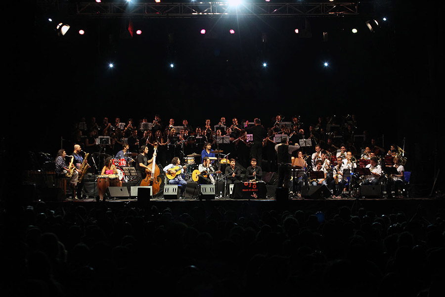De este modo, los diversos instrumentistas fueron dejando sus huellas durante más de dos horas en el majestuoso escenario del Etnosur, donde el público vibró en todo momento y se entregó a la gran propuesta que se le planteó. Pero dirán ustedes, ¿y de flamenco qué? Pues sencillamente si te reúnes de Josemi Carmona a la guitarra, el Bandolero a la percusión, Marc Miralta a la batería y marimba, Pablo Báez al contrabajo, y los Mellis a las palmas y coros, pues ya tenemos el cuadro montado. Aunque echamos en falta que los hermanos onubenses cantarán un poquito más, pues solo dejaron una pinceladita de sus grandes cualidades vocales flamencas en un par de estrofas por bulerías. Así que cuando creíamos que Jorge Pardo tenía todo inventado, ha dado un nuevo soplo de aire flamenco a su ya dilatada carrera, con un ingente número de nuevos temas, aunque sin olvidar las míticas composiciones que lo han encumbrado al olimpo de lo jondo. Destacar varios momentos estelares de la noche, por un lado la saeta que se convirtió en seguiriya acompañado por el Ensemble Cofrade, y el momento más esperado de la noche, cuando con todos los músicos en el proscenio se producía el clímax de la producción, curiosamente con un marcha mora, típica del levante español.