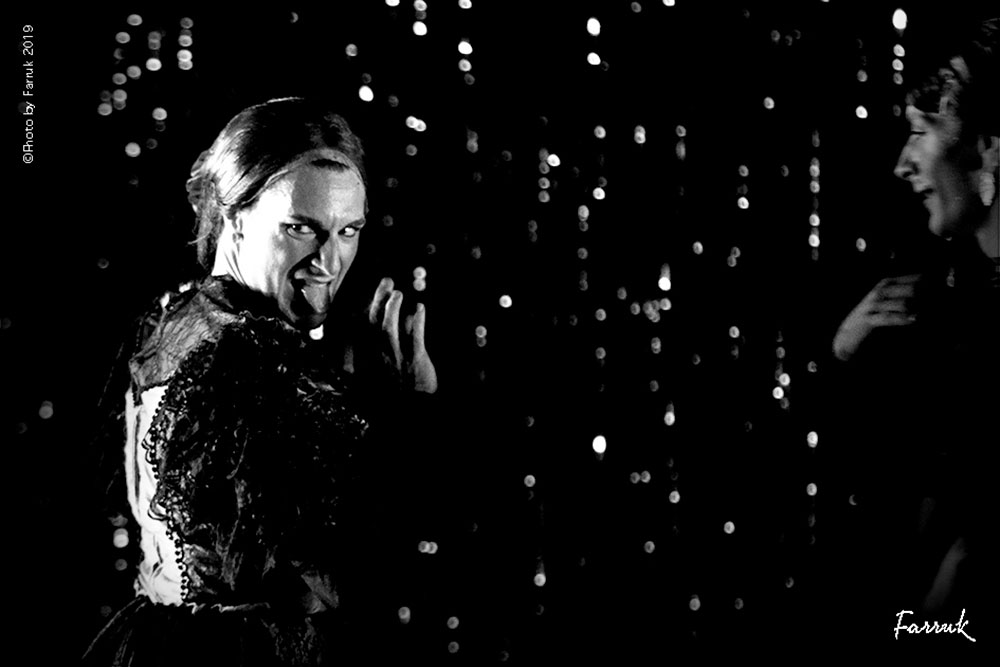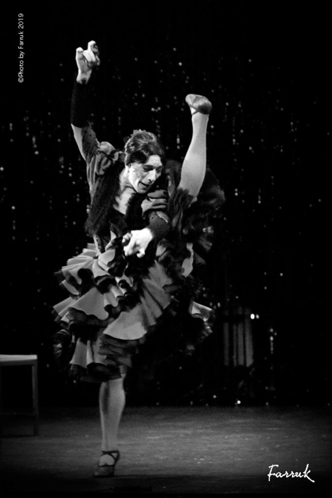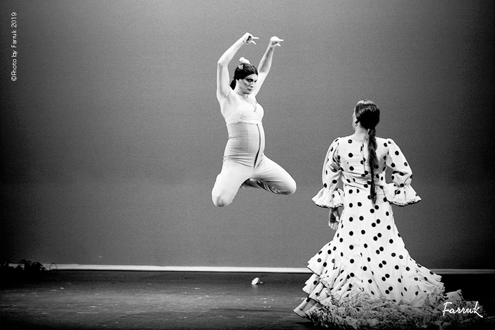 Segmentos de baile convencional y bien interpretados, con el excelente cante de David Carpio e Ismael de la Rosa, y la guitarra de Francisco Vinuesa, están generosamente salpicados de humor a lo Chaplin. Últimamente la comicidad está encontrando su legítimo lugar dentro del arte jondo. De pronto estás viendo a Carmen Amaya en Los Tarantos, o los bailaores/as se mueven como muñecos de trapo de tu peor pesadilla, o suena la Niña de la Venta como jaleo de tablao o se representa lo que seguramente es el primer taconeo realizado sobre el techo, o sea, el cuerpo al revés, y no me pidáis que explique lo que acabo de escribir – es para verlo. Al final, el arte alcanza las alturas mediante modificaciones de vestuario, y los vestidos y mantones se quedan colgados sin dueños, meros trapos que nos sirven en un momento dado para comunicar quienes somos o queremos ser.