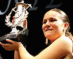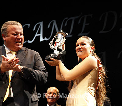 Juan Torres Fajardo “Habichuela Nieto”, Bordón Minero; Lucía Álvarez “La Piñoña”, Trofeo Desplante y Sergio Monroy, Premio El Filón al mejor Instrumentista. La cantaora de Badajoz, Celia Romero, de 16 años se ha alzado a las tres y diez de la madrugada con la Lámpara Minera 2011 del Festival Internacional del Cante de las Minas de La Unión. La cantaora, oriunda de Herrera del Duque, provincia de Badajoz, ha conseguido el preciado galardón en una intensa y reñida final en la que han competido 13 artistas, repartidos en 8 cantaores, 2 bailaoras, 2 guitarristas y 1 instrumentista. Celia Romero ha conseguido la Lámpara Minera, valorada con 15.000 euros, y por consiguiente el primer Premio por Mineras, dotado con 6.000 euros, y se ha alzado además con el primer premio por Tarantas, dotado con 4.500 euros. En la modalidad de cante, el segundo premio por mineras (4.500 euros) ha recaído en el cantaor sevillano Evaristo Cuevas. Por otra parte, la bailaora gaditana Lucía Álvarez “La Piñoña” ha logrado el Trofeo El Desplante valorado en 10.000 euros, quedándose en segunda posición la bailaora americana Lakshimi Basile “La Chimi” (6.000 euros). Asimismo, el guitarrista granadino, Juan Torres Fajardo “Habichuela Nieto”, se ha hecho con el trofeo Bordón Minero, además de 6.000 euros, con tan sólo 22 años. Juan Torres, nieto del emblemático guitarrista Juan Carmona Habichuela, dedicó unas notas en su taranta a la figura del desaparecido Enrique Morente recordando a los espectadores los versos tantas veces cantados por el granadino “Aunque es de noche…”. Pero no fue el único homenaje, “Habichela Nieto” salió al escenario de la Catedral del Cante ataviado con un chaleco serigrafiado con la imagen del cantaor granadino. Por su parte, Alberto López Martínez ha sido el segundo clasificado en guitarra, con un premio dotado con 4.000 euros. El Primer Premio del concurso Instrumentista flamenco, dotado con 7.000 euros, ha recaído en el pianista de San Fernando de Cádiz, Sergio Monroy. Por último, el premio por cartageneras ha recaído en Ana Mochón; el de malagueñas ha recaído en Antonio José Nieto, otros cantes de Málaga, Granada, Córdoba y Huelva para Beatriz Romero González; en el grupo de cantes bajo andaluces, el premio por siguiriyas para Rafael Usero, “Rafael de Utrera”, y el premio por soleás para Maria Rosa Navarro “La Divi”; y el premio por bulerías para Antonio Flores Cortés, “Rubio de Pruna”. Al término de la Gala y tras conocerse el nombre de los ganadores, la nueva Lámpara Minera, Celia Romero, se mostraba muy sorprendida tras alzarse con el máximo galardón, y ha dicho sentirse “muy cómoda en el escenario junto al guitarrista unionense Antonio Muñoz, gran conocedor de estos cantes”, y anunciaba que “voy a celebrar el premio junto a mi familia, presentes en esta noche tan mágica, y lo voy a hacer en la feria de mi pueblo”. click para ampliar las fotos