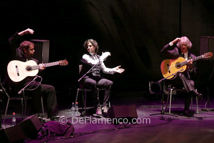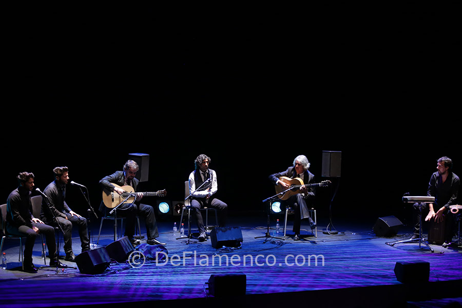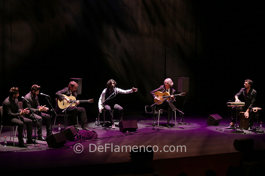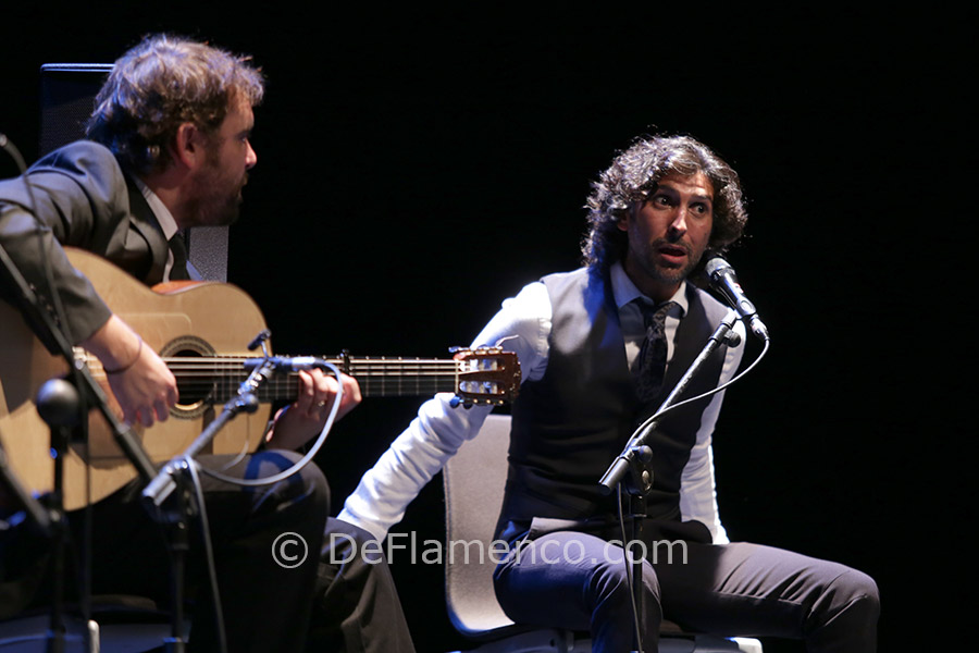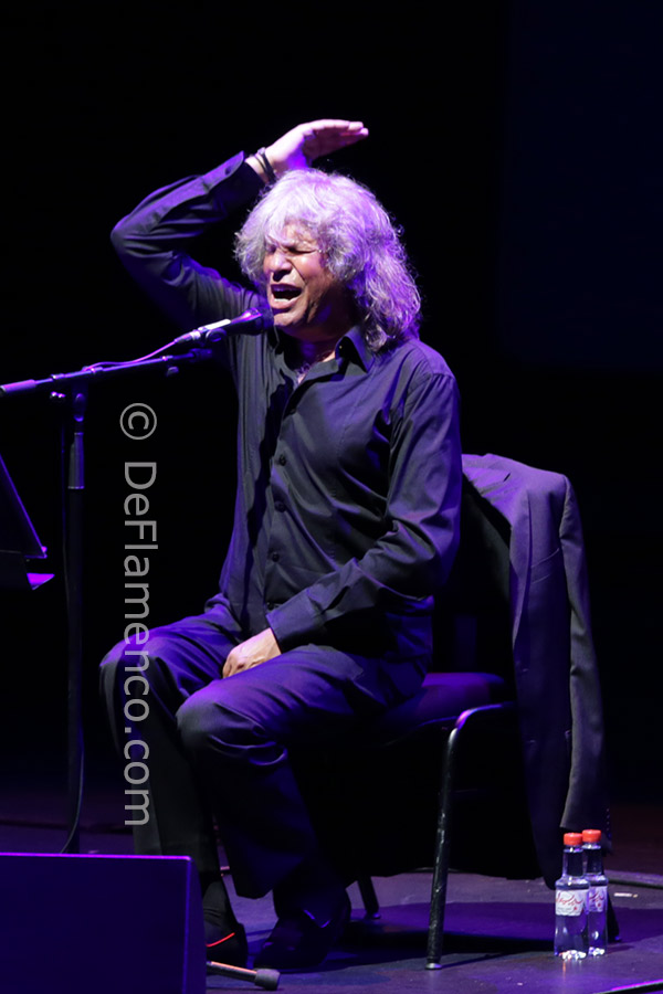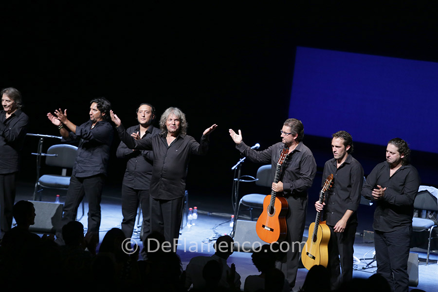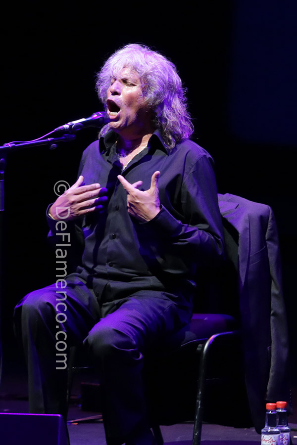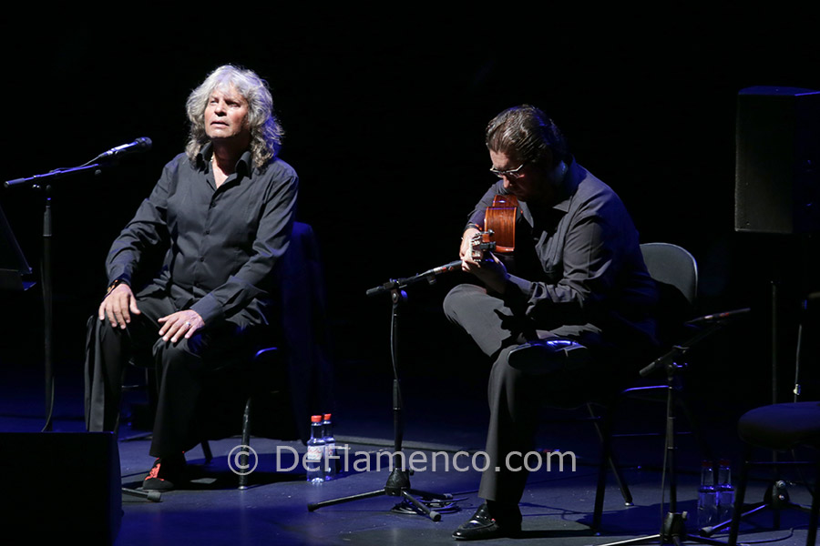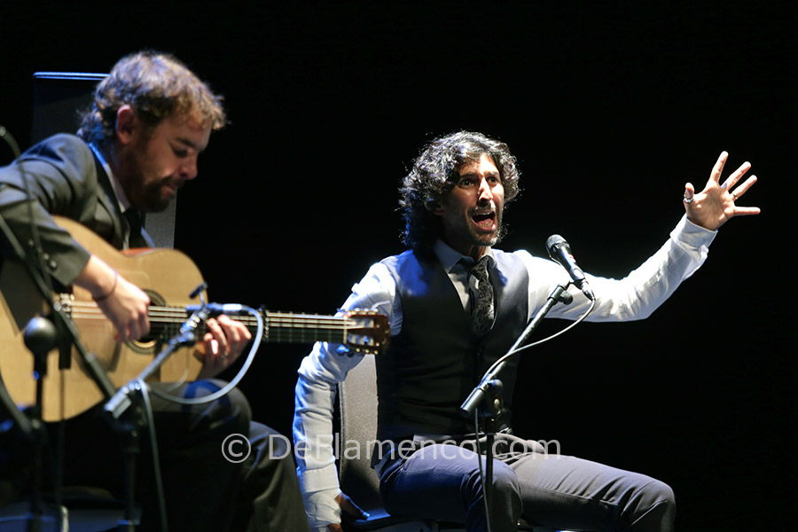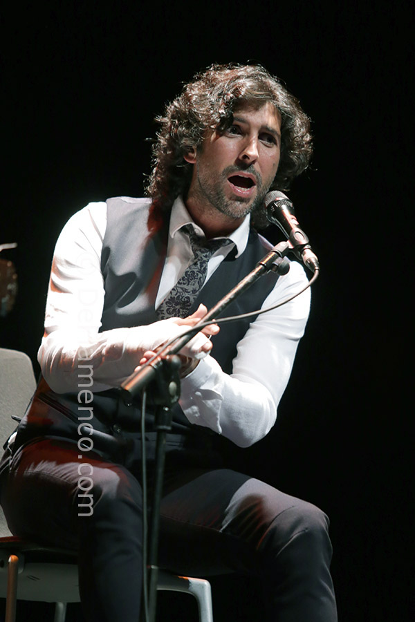 Por su parte, José Mercé, casi le basta con su presencia para llenar el escenario, hizo el concierto en dos partes, la clásica, con sus malagueñas, soleá, seguiriya… acompañado de Antonio Higuero en la guitarra, hasta que llama a “su gente” para adentrarse por alegrías, tangos, … hacer el que es ya su himno en los conciertos “Al Alba” y que invita al público a cantar con él y a tocar las palmas, con seguimiento desigual, los más de 1200 espectadores andaban entregados al jerezano, solicitándole repetidamente los hits flamencos “Aire”, “Al amanecer”…, larga tanda de bulerías para recordar a su Moraíto … y por fin “Aire” que provocó el delirio del público, que puesto en pie, ya siguió los bises y la clásica pataíta de un gran José Mercé.