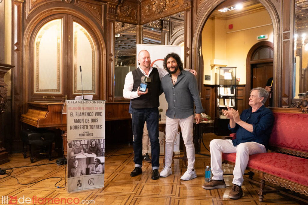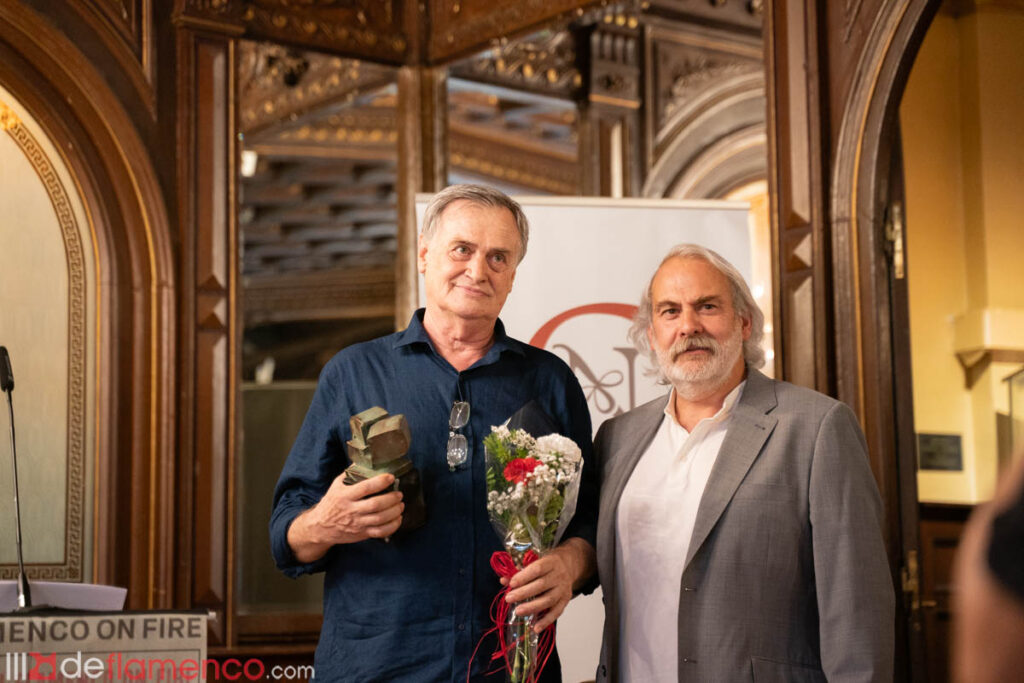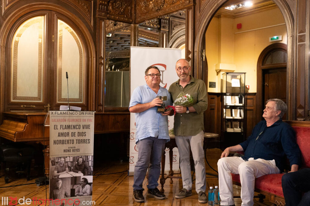 Todo es un poco surrealista pero volvemos al casino para rendir homenaje al investigador almeriense Norberto Torres, a la tienda “El Flamenco Vive” en la persona de Alberto Martínez y a la academia Amor de Dios a través de su director Joaquín San Juan. Una persona reflexiva y cordial que representa lo mejor del flamenco.