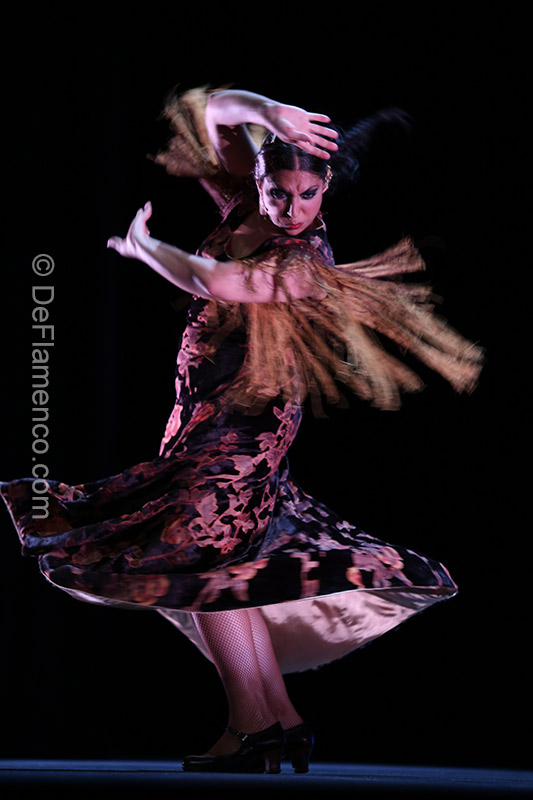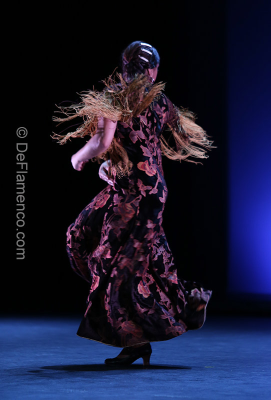 In her third appearance, her arms were draped in fringe as if covered with tears, and her hands spoke more than others manage to say with their whole bodies. She didn’t repeat herself, nor did she tire, she looked like no one else and shortly after she began dancing everyone had forgotten about La Capitana. She managed to keep in character and sustain every movement without rushing, without giving in to speed or floor-pounding. She was momentarily a child, running around the stage, even seeming to enjoy her own private game.