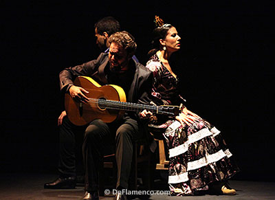 Text: Pablo San Nicasio Ramos Dance: Guadalupe Torres and Marco Flores. Cante: Ismael de la Rosa and Juan José Amador. Guitar: Víctor Tomate and Claudio Villanueva. Percussion: Kike Terró Unexplored corners of flamenco The work “De los Rincones” came with a good reputation after having received prizes in several choreographic contests. That, and the wonderful group Guadalupe Torres brought along with her to lay out her concept of flamenco dance. Everything was working in the right direction for having a good time with the art of flamenco. With a full house at the cozy Teatro Pradillo there was good reason to see and hear the hour and twenty minutes the show lasted. With some ups and downs, the overall direction was upwards, and given the limited resources available, the performers, production crew and diehard followers can well feel satisfied with the results. In “De los Rincones”, young dancer Guadalupe Torres brings seven flamenco vignettes based on the premise of completely orthodox dancing with the greatest respect for the tradition of cante for dance. Seven scenes full of feeling, beginning with “Romance de la Monja” interpreted by Guadalupe with the moving background of the time-worn voice of the legendary Rafael “El Negro”. With hardly a break, serranas becomes the basis for the dance of Marcos Flores, a good friend and colleague of Guadalupe’s. A guest artist who continues to grow and whose name will be written in caps in the history of flamenco dance, no doubt about it. It’s important to underline the wisdom of choosing the style of serranas for this moment. A difficult and very flamenco cante, seldom heard these days, a flamenco delicacy. “Calma” is the moment the intensity is really cranked up in a show which is a triple-force effort. On the one hand, the guitarists who engage in an important technical discourse. On another level, the singers who constantly challenge one another and exhibit their technical prowess, especially the dance couple who never cease to communicate in their virtuosity. The taranto that paves the way for various styles of tangos, is the taking-off point, as we said, for an idea that can now show it’s best face. A very emotional choreography of abandolaos from the extraordinary Marcos Flores, is followed by another, a no less moving soleá with mantón by Guadalupe. With the interlude “Tres Morillas”, the voice of Ismael de la Rosa shines more than at any other moment. And the zorongo. Once again we return to the hidden treasures of flamenco. A high point of the show with styles such as this which, in the era of bulerías and tanguitos, have a powerful degree of richness. But in the desire not to exploit them, they become all the more exotic and luminous when they are rediscovered. Very good level in the dance couple who managed to make this number something more than just another dance. Minera and cantiñas end with the voice of Niño de Marchena who recited “Romance a Córdoba” with the shadows of Guadalupe carrying the rhythm. A well-rounded work that squeezes out the best of seven interpreters, and spends maximum energy without moving away from tradition. Because serrana, jabera and zorongo couldn’t be more traditional. Nearly hidden corners of flamenco that must never be forgotten. And there they are, for anyone wishing to use them. |