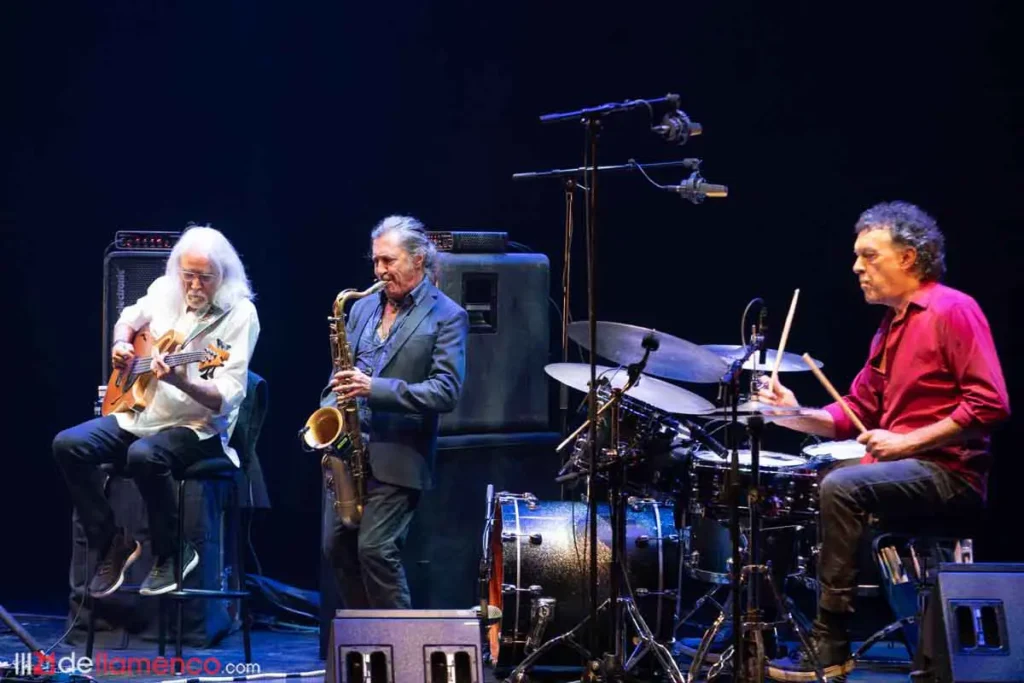 El caso es que uno se instala en la excelencia de lo que está escuchando cuando el trío engancha el duende y alcanza el arrebato, ese puntito de éxtasis que te hace rugir y recordar por qué nos dedicamos a esto. Ellos y nosotros; ellos tocan y nosotras escuchamos. A Benavent se le escurrió la púa y Di Geraldo confesó que “cuanto más viejo, más nervioso”. Jorge Pardo fue más didáctico y agradeció al personal que siga yendo a escuchar música en vivo. Jorge lo sabe porque es el músico que interactúa con más músicos y más músicas en garitos de medio mundo. A Tino le va distinto, ha pasado de ser el compás de los discos a un milagro en directo sea con Fraskito o en la jam de El Molino del Manto. La puñeta es que su último disco “Concert bal” (2021) es difícil de mover y de girar. ¡Mecachis!
