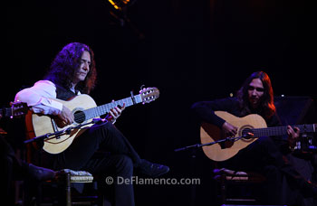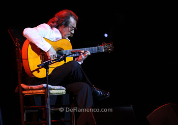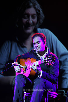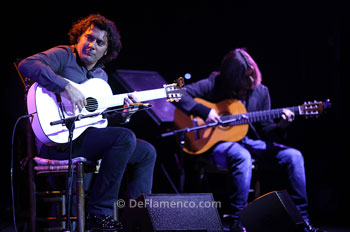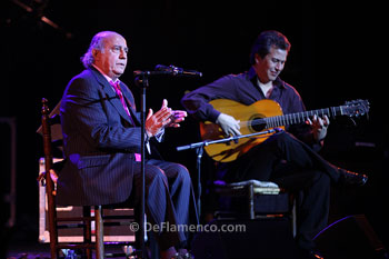 Homenaje a Moraito (I) – Reseña & fotos Estábamos preparados para otra sesión de larga o larguísima duración, y llevábamos reservas. Pero a la segunda fue la buena. Se nos hizo ligera. De nuevo con la bulería como lubricante. La promesa a priori seguía siendo atrayente, y Morao bien vale una fiesta de las de varios días. Así que bajamos con ánimo la Gran Vía y nos olvidamos de la hora de volver al tajo al día siguiente. La noche enfiló bien desde el principio. Se empezó, ayer puntualmente, a emitir parte del documental “El Cante Bueno Duele”, de nuestros queridos amigos holandeses. Se colocó de fondo una foto adecuada para el evento y no desfasada, como la del día anterior. Y se respiraba otro clima, menos cargado y artificial que en el estreno del festival. Morao ha vuelto a vencer y, como el Cid, conquista ciudades y las tiene en vilo varios días. Manuel sobrevuela siempre dejando estar, como cuando tocaba. La segunda sesión además, en lo artístico, superó en bastantes puntos a la del miércoles. Ya de entrada, Diego del Morao engrandeció aún más la saga con sus bulerías “Orate”, verdadero portento de compás, técnica y sabor. Sin duda estamos ante un genio en el toque por bulerías, nada nuevo en la casa. José Mercé, ayer especialmente enfibrado, brindó también una más que interesante secuencia de soleá y bulerías, quizá la más flamenca de sus apariciones en la capital en estos años. Éramos optimistas. Si salíamos tarde por lo menos no nos pesarían las botas. Pitingo pasó a escena para hacer otras bulerías (Diego del Morao seguía sin dar respiro) y un tema de su nuevo y nada flamenco de su “Malecón Street”. Y llegó el terremoto. Si el día anterior había sido “El Torta”, el crujido del jueves corrió a cargo de la señora Montse Cortés. Aunque lesionada y sin apenas poder caminar, se presentó en la sala e impresionó en un soplo de cinco minutos de fiesta. Ayer y el miércoles hubo muchas, de variado tempo y concepto. Ha habido bulerías para escoger y analizar hasta morir en tres tiempos. Pero entre todas ellas, es seguro que han llegado a la cumbre las de una mujer catalana. Uno de los guitarristas que aquel aciago día de agosto más remarcó su admiración por Manuel fue “Tomatito”. El de la Chanca regaló dos temas: “Two Much Love Theme” y la versión de su “Dulce Manantial”, últimamente rebautizada como “Bulerías de Gata”. Acompañado por su hijo y Cristóbal Santiago, “Tomatito” no quiso perderse una fiesta en la que, quizá, (no meteremos más el dedo en la llaga) debieron aparecer otros muchos de los grandes de la sonanta. No se puede pedir que la guitarra se programe y tenga entidad si antes no dejamos la casa propia chorreando oro cuando se va uno de los que la hacían grande. El que tampoco se esfumó fue “Pepe Habichuela”. Antes al contrario, fue el único en los dos días en salir completamente solo al escenario. Por no llevar no llevó ni palmeros. Su soleá vale por mil y su soniquete otro tanto. Este, lo sabíamos, sí que es el verdadero “tío Pepe”. Como los Moraos, con denominación de origen. Josemi Carmona llegó tras su padre, rumbeó “Tangroove” y pasó por la piedra de las bulerías los “Dos Puñales”. Música que, sin duda, le hacen no parecerse a nadie. Tenía que estar y estuvo. Hubiera sido de traca que el amigo Moneo repitiera el quejío del día anterior. Pero los artistas son así y en la cara del toro no siempre se tienen las ideas claras. De blanco inmaculado Juan Moneo repitió bulerías, pero bastante más afectadas y teatrales que las del día antes. Nada que ver. Quien sí levantó el vuelo fue Fernando de la Morena, quien se reivindicó en unas bulerías mucho más afinadas y resueltas que las del miércoles, donde quizá la emoción le agarró la garganta. Las caras de dos monedas que sólo pueden acuñarse en la tierra del arte. La recta final del maratón “morao” contó con Carmen Linares, señora y agradecida siempre, que hizo causa con “El Niño Yuntero” y, por cantiñas, junto a su “Salvi”. Navajita Plateá fue la aportación pop de la noche, y “Diego el Cigala” volvió a firmar por bulerías una noche que, de nuevo, cerró Jerez y medio, como cantó la collera “Gomaespuma”. El flamenco en general estuvo a la altura, se hizo de Madrid un fortín del cante grande y se homenajeó al soniquete personificado que fue Morao. Así, algún día entraremos “por la verea…” |