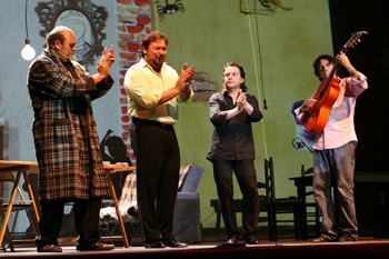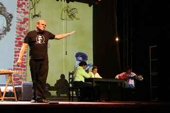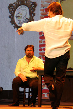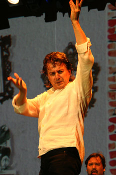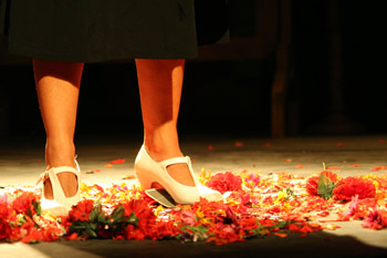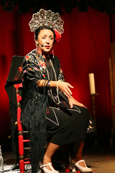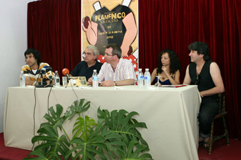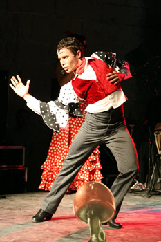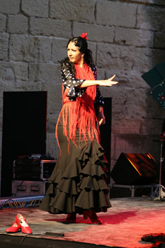 “Flamenquita, La niña que perdió el compás” Just when some quarters are clamoring for the disappearance of summer flamenco festivals, the movement continues to evolve and expand at its own good pace. The recipe of sultry Andalusian nights and other tourist attractions, combined with good music and theater, results in a nearly irresistible product, both for foreign and national audiences. On Thursady, in Arcos de la Frontera (Cádiz), one of the most beautiful spots in Spain, another festival was born. At 12 midday mayoress Josefa Caro cut the virtual ribbon at a press conference with the presence of the media and several main artists. Over the course of four intense days, the first Encuentro Flamenco en Escena is offering sixteen shows at different venues, in addition to a progrram of parallel activities. According to festival director Curro Velázquez Gaztelu, Flamenco en Escena is a pioneer in the field, with a program that is “midway between flamenco and modern dance”, with the objective of “separating folklore from theater”. The festival aims to support experimental projects related to flamenco, including the most avant-garde shows. “Dance, theater, music, performance art, circus, puppets and lots of flamenco” explained Velázquez Gaztelu, the nephew of another great pioneer, José María Velázquez Gaztelu, who was responsible for the the legendary series Rito y Geografía del Cante. In Arcos, past, present and future join hands at this showcase where international programmers have the opportunity to discover a wide range of the most contemporary shows tinged with flamenco. In the afternoon, painter Antonio Valentín inaugurated the exposition of his very interesting work, based mainly on portraits of famous flamenco figures. A nine in the evening, the program of performances got underway with a light-hearted show designed for children. In the line of similar shows, the content was both interactive and educational. At half past ten in the large plaza del Cabildo, the work “El Gitanito Esquizofrénico” was presented. The absence of the main actor, David Pielfort, was covered by Luis Lara in a series of brief TV-style skits brilliantly backed-up by Javier Barón’s dancing and the voice of José Valencia, top professionals who are always a sure bet. Javier Patino provided the guitar accompaniment. At eleven thirty at the San Pedro plaza, Asunción González offered “El Duende no Tiene Nombre de Mujer”, a lengthy monologue sprinkled with singing and meant to represent the inner life of Pastora Pavón “Niña de los Peines”. In three acts, the versatile artist conjured up Pastora’s infancy, maturity, senility and death. This first day of the festival wound up with the main dish “Chanta la Mui”. In this work, three magnificent dancers, Daniel Doña, Olga Pericet and Marco Flores, a native of Arcos, danced together and individually with a certain robotic aesthetic, developing concepts that were both dream-like and intellectual, but the most impressive element was the technical brilliance of the three young dancers. clic for enlarge photo